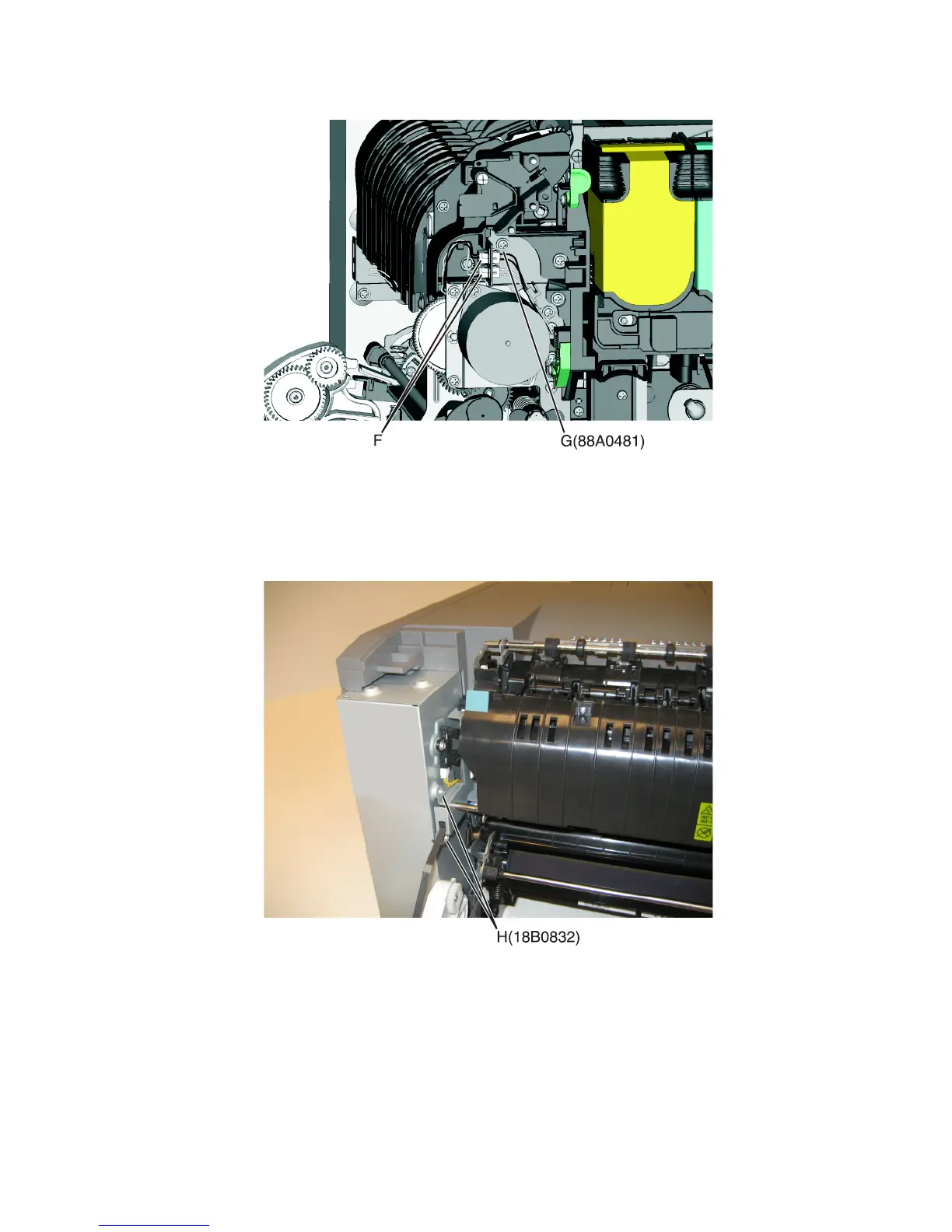 13 Rotate the top of the fuser toward the front, and then slide to the left to align the fuser side frames with the flat