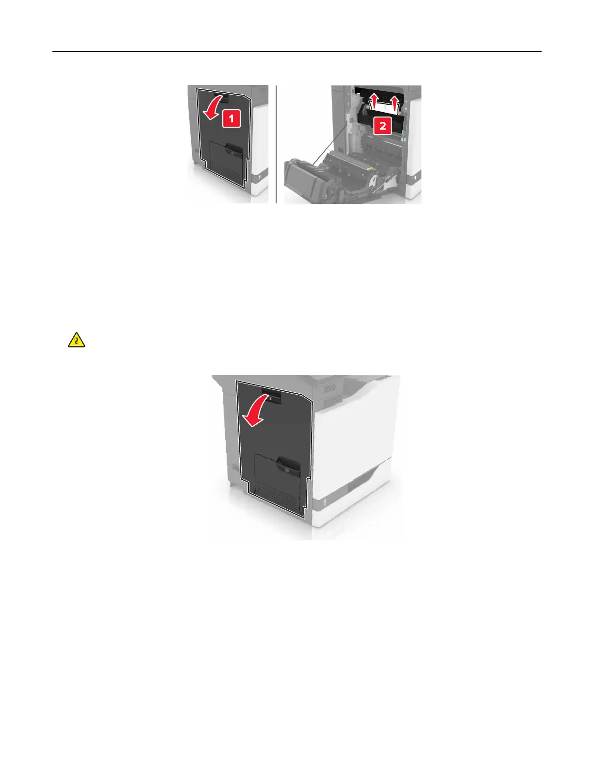 CAUTION—HOT SURFACE: The inside of the printer might be hot. To reduce the risk of injury from a