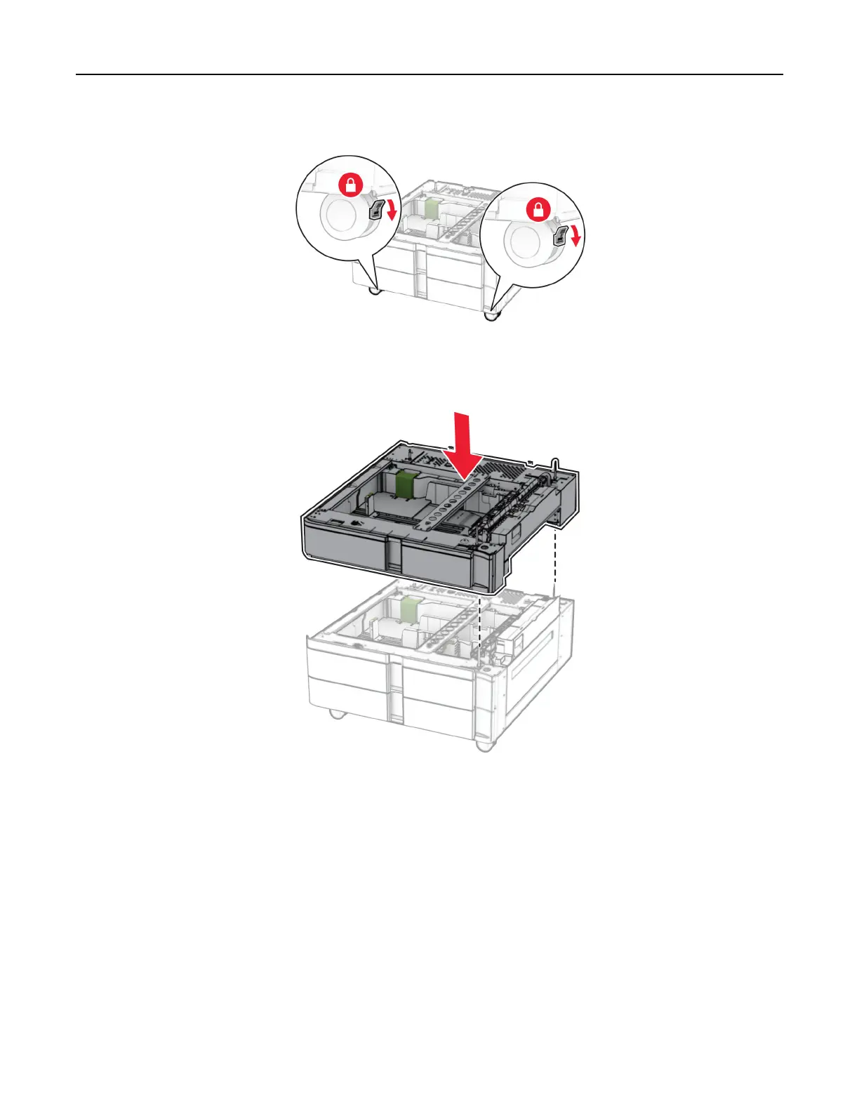 5 Align the 550‑sheet tray with the 2 x 550‑sheet tray, and then lower it into place.