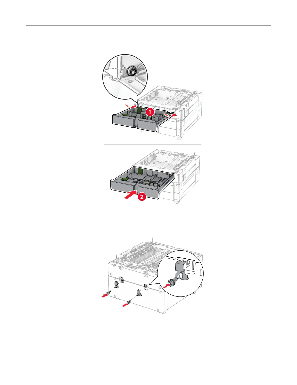 9 Secure the rear part of the 550sheet tray to the 2 x 550sheet tray.