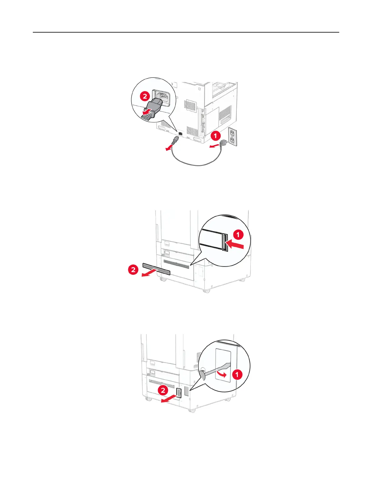2 Unplug the power cord from the electrical outlet, and then from the printer.