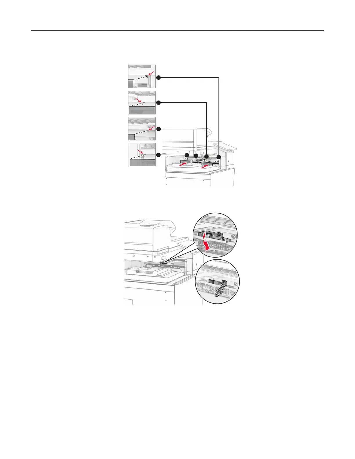 9 Attach the protective strips of the oset stacker to the printer.