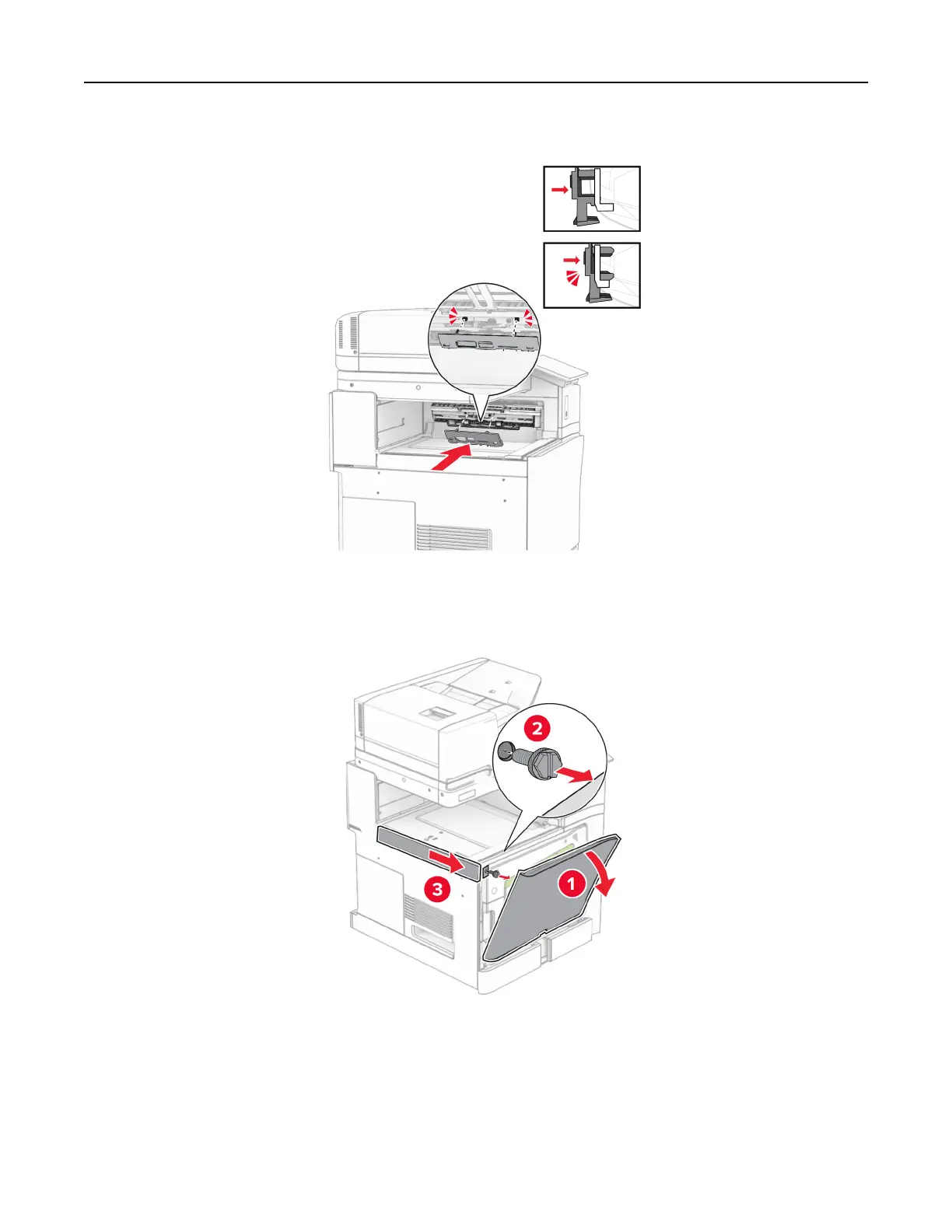 9 Open the front door, and then remove the cover on the left side of the printer.