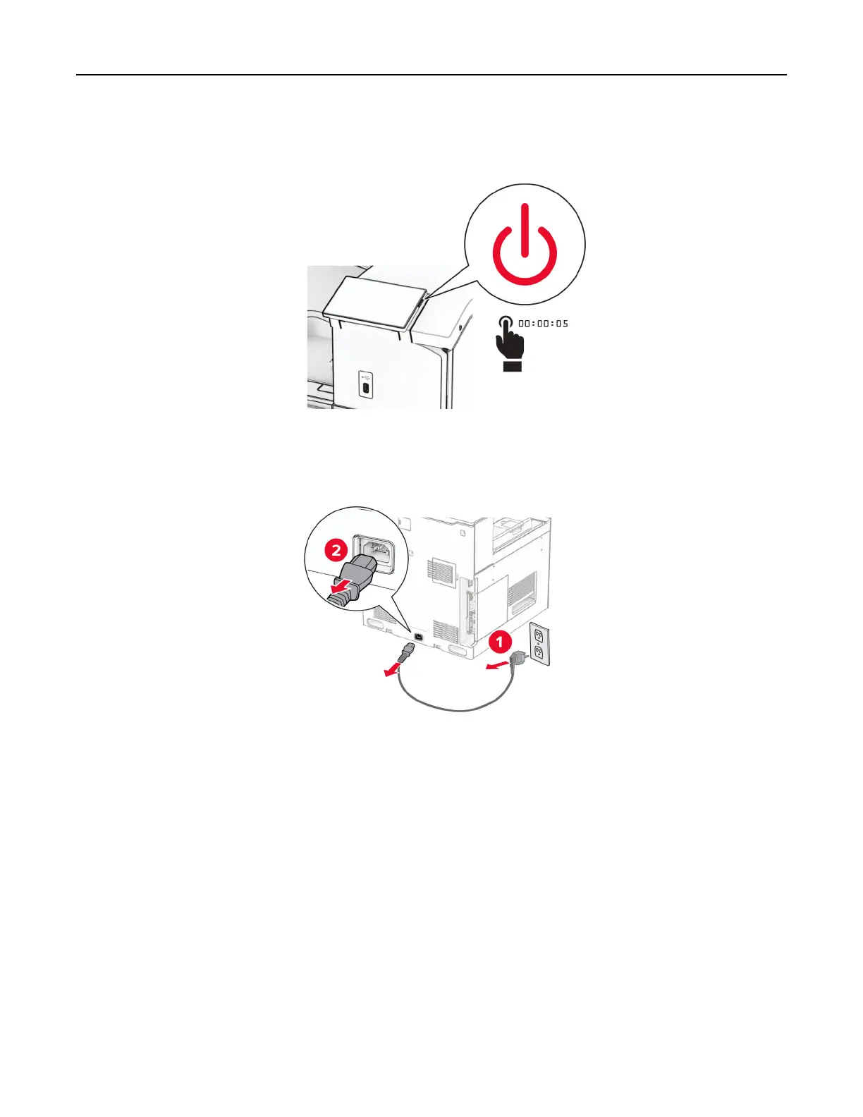 2 Unplug the power cord from the electrical outlet, and then from the printer.