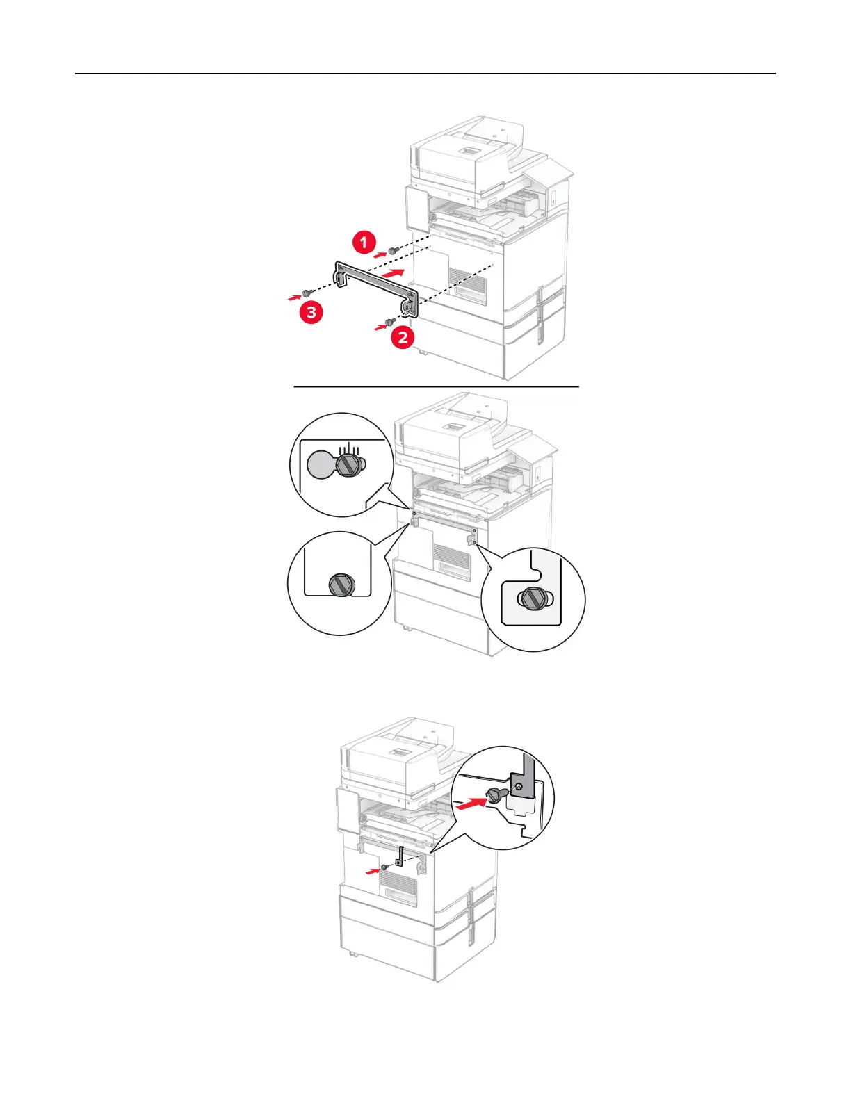 31 Attach the metal bracket that came with the paper transport to the printer.