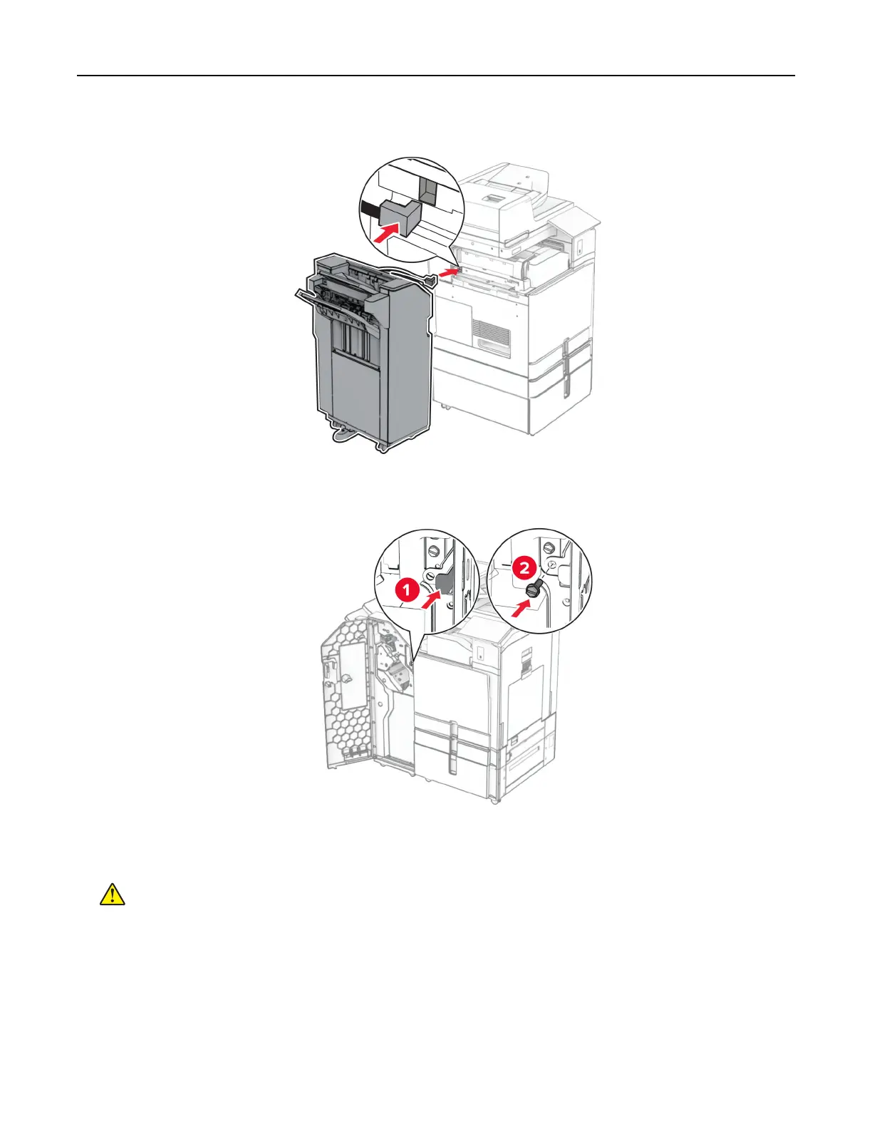 42 Attach the finisher to the printer.