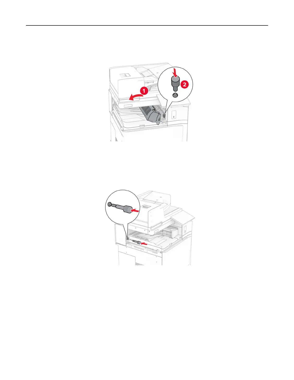 15 Open handle G, and then install the screw into the front of the paper transport.