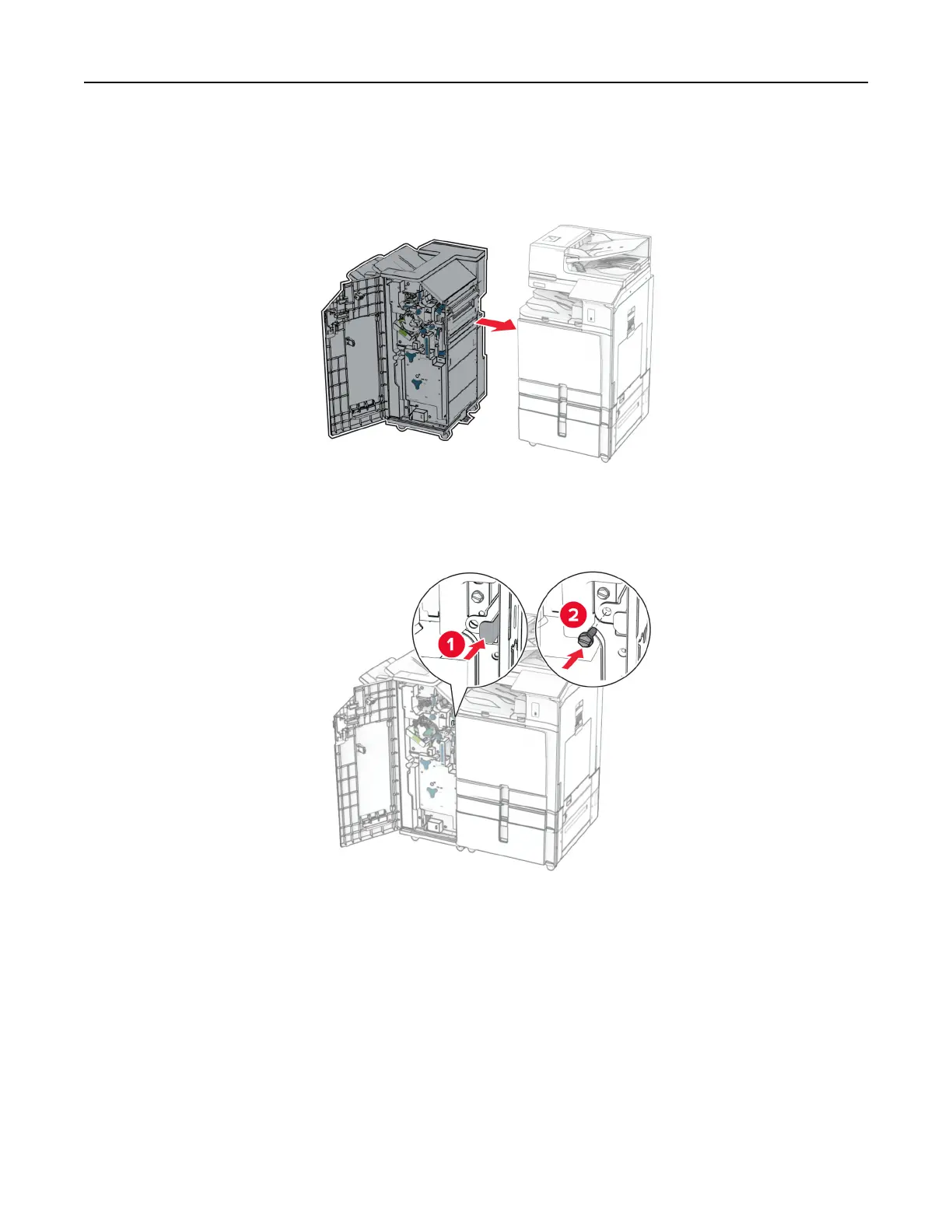 34 Attach the finisher to the printer.