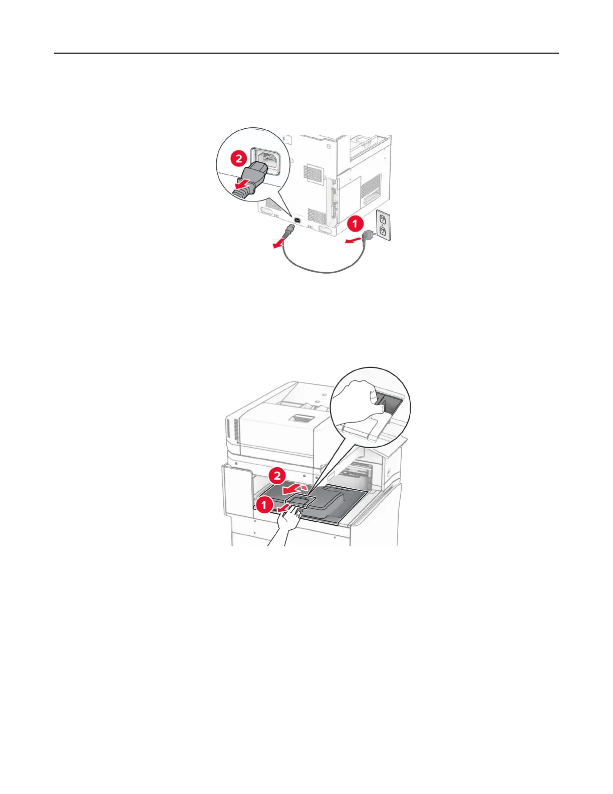 2 Unplug the power cord from the electrical outlet, and then from the printer.