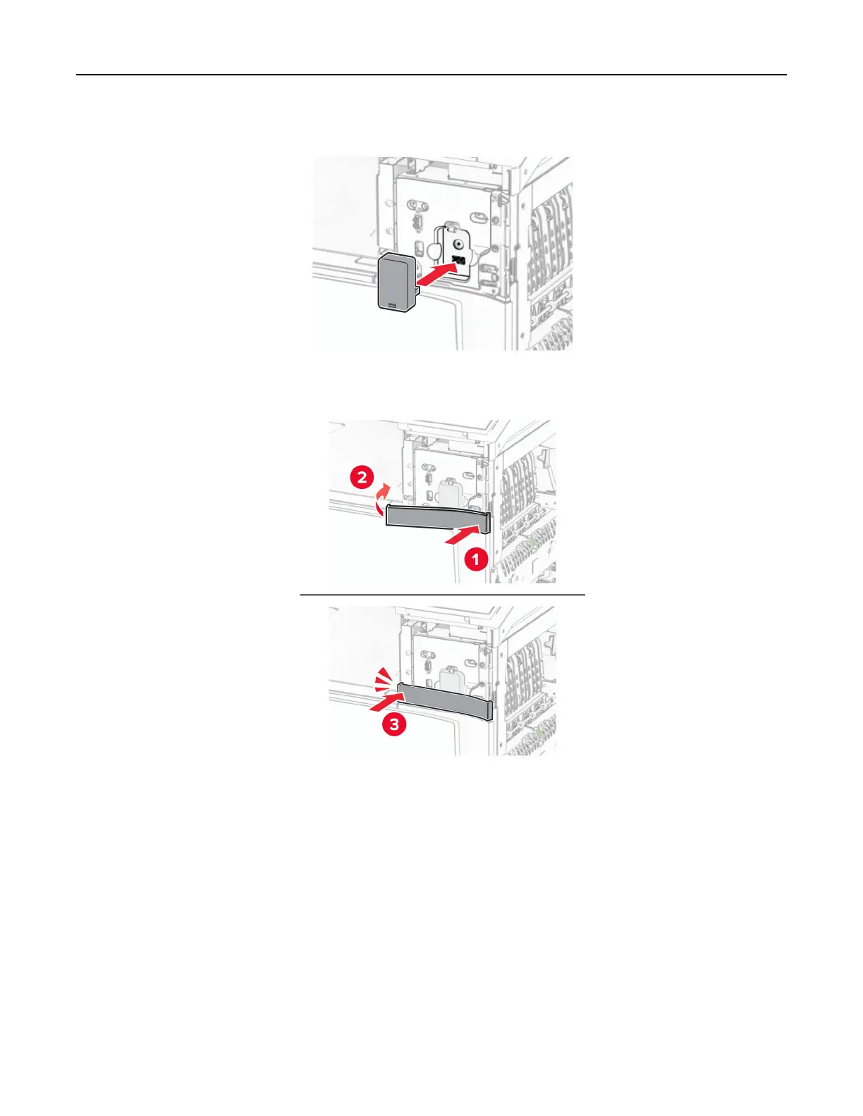 7 Attach the lower port cover until it clicks into place.