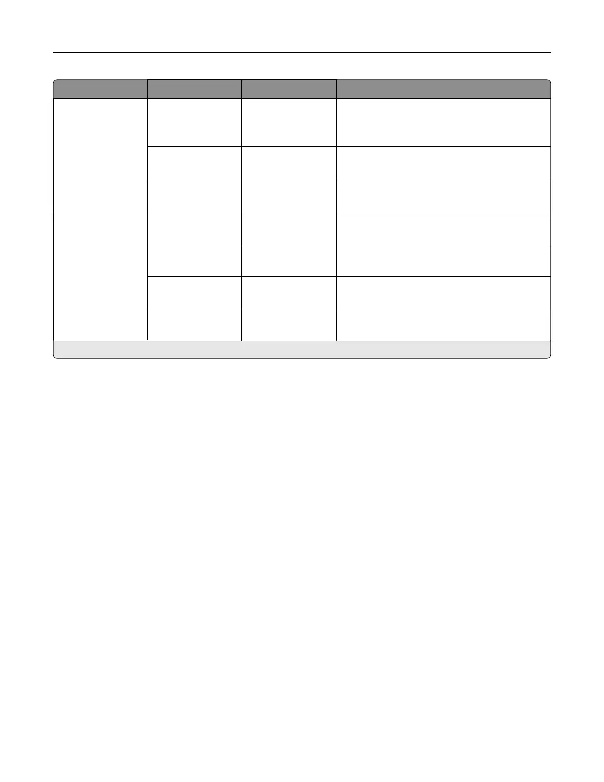 Menu item Submenu item Settings Description