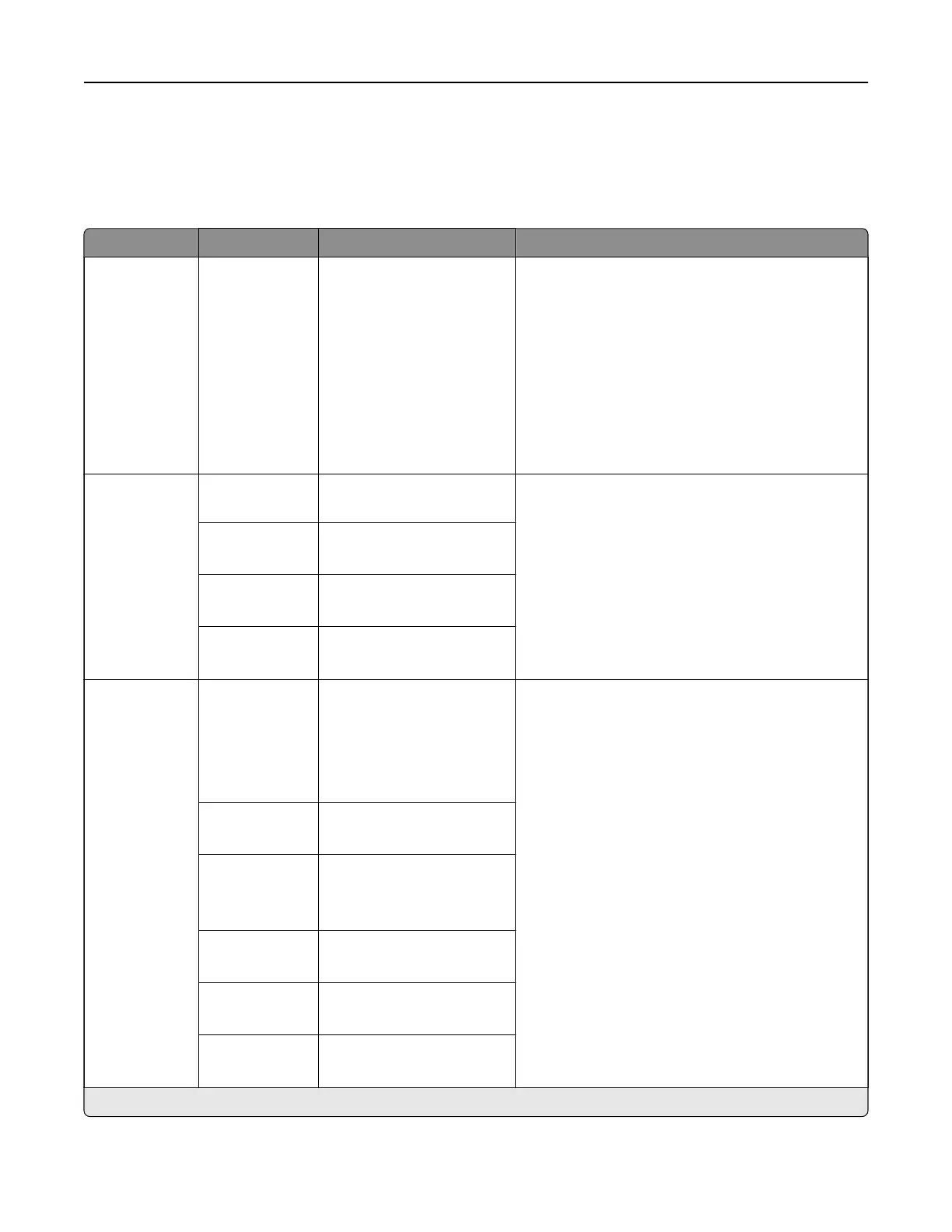 Menu item Submenu item Settings Description