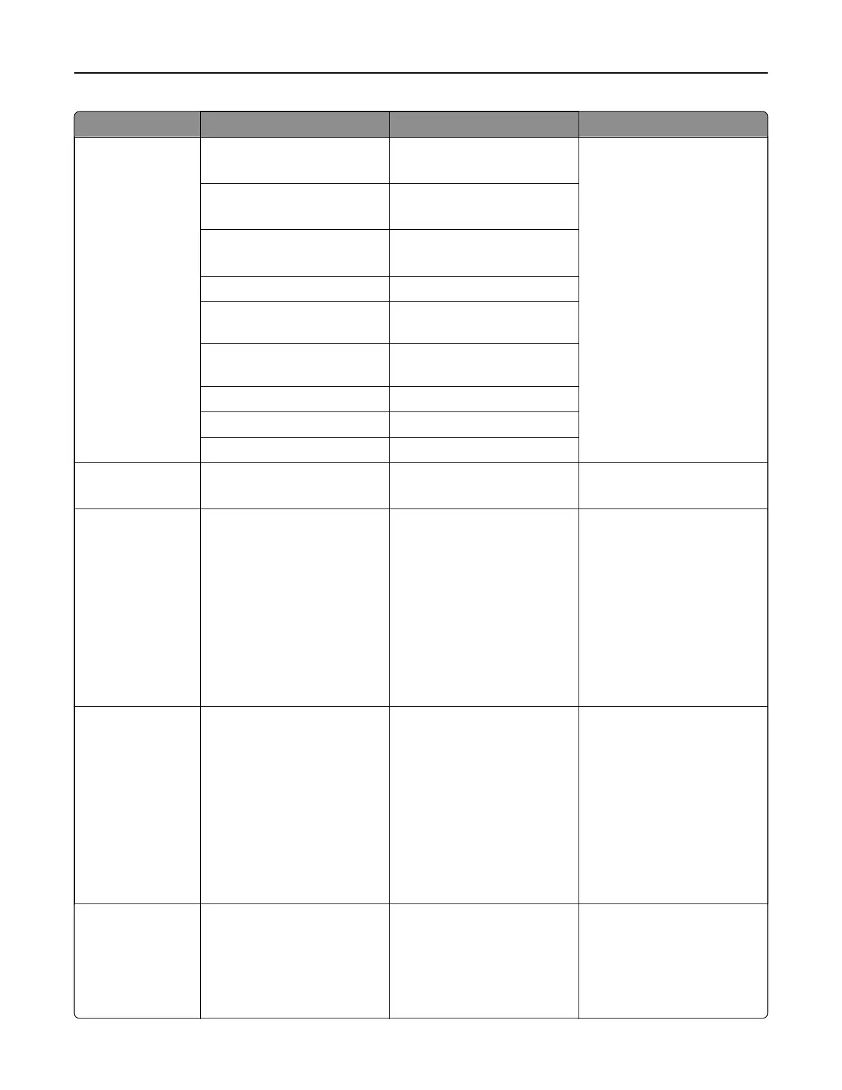 Menu item Submenu item Settings Description