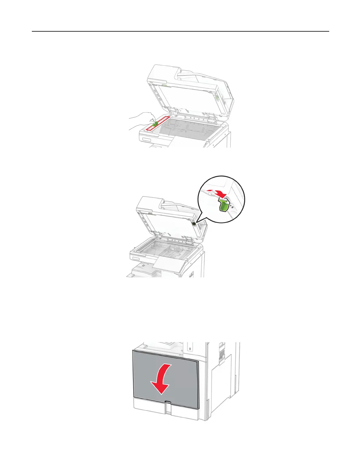 7 Using the tool, wipe the ADF glass.