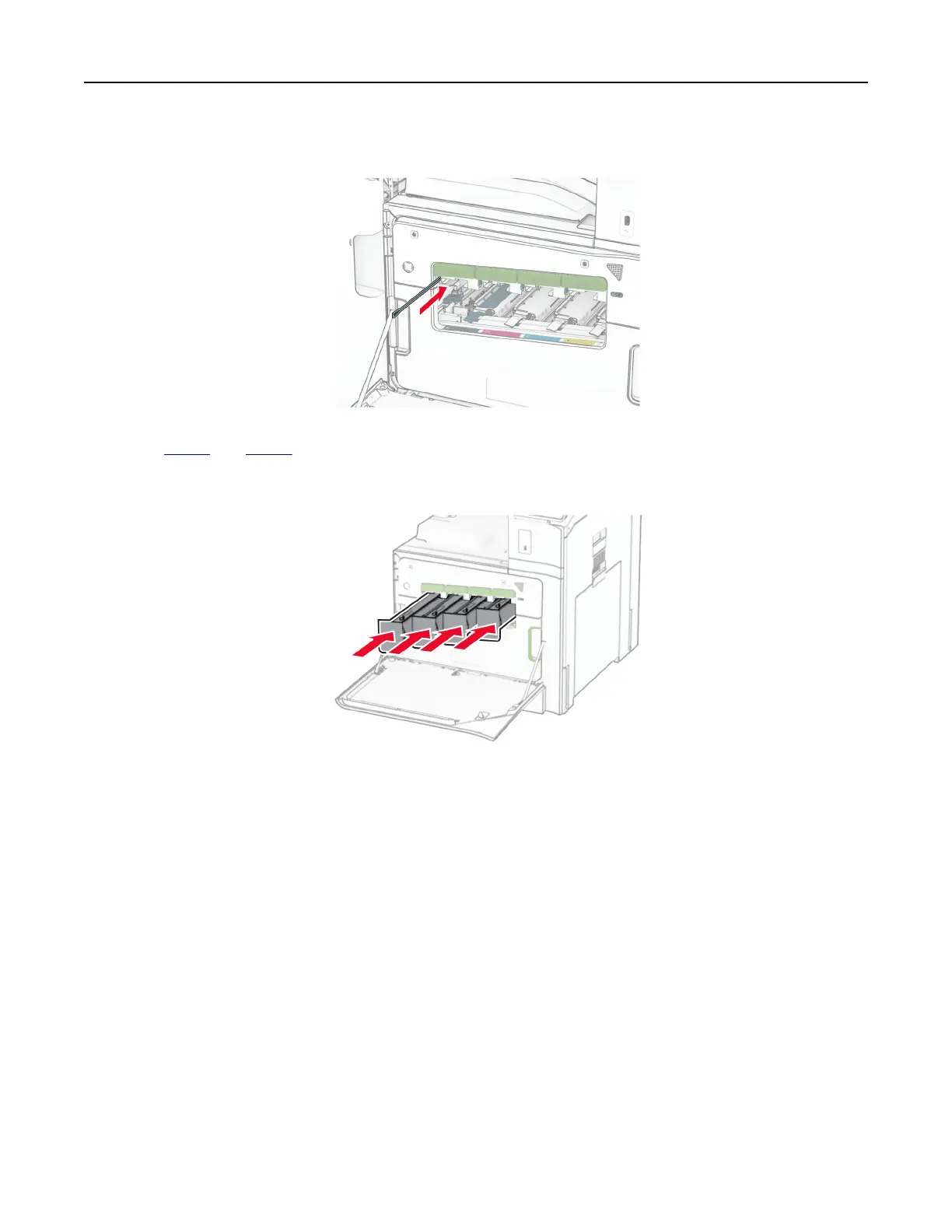 6 Insert the toner cartridges.