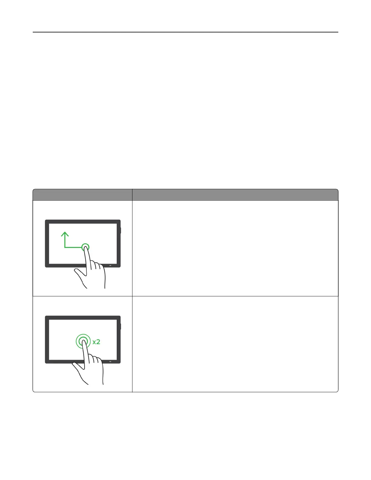 Note: This gesture is also applicable when the printer is in normal mode.