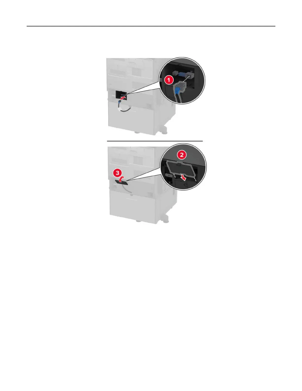 10 Connect the tray connector to the printer, and then attach the cover.