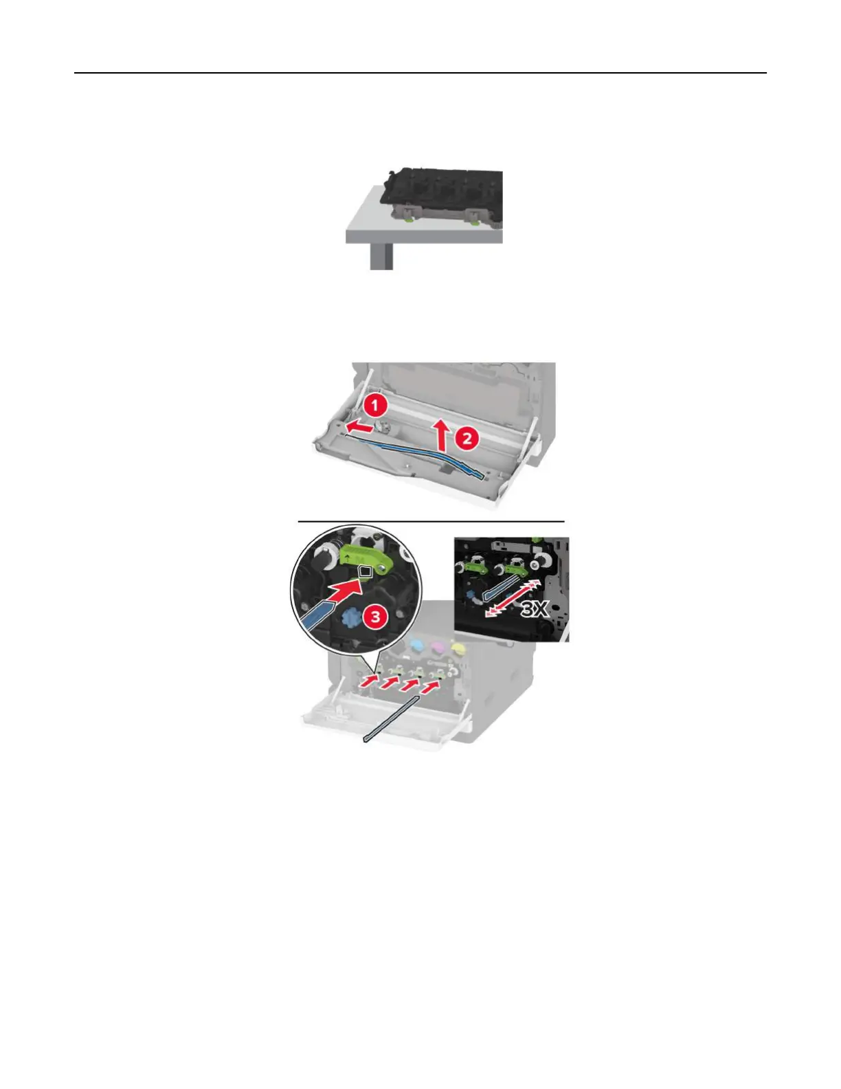 8 Remove the printhead wiper, and then clean the printhead lenses.