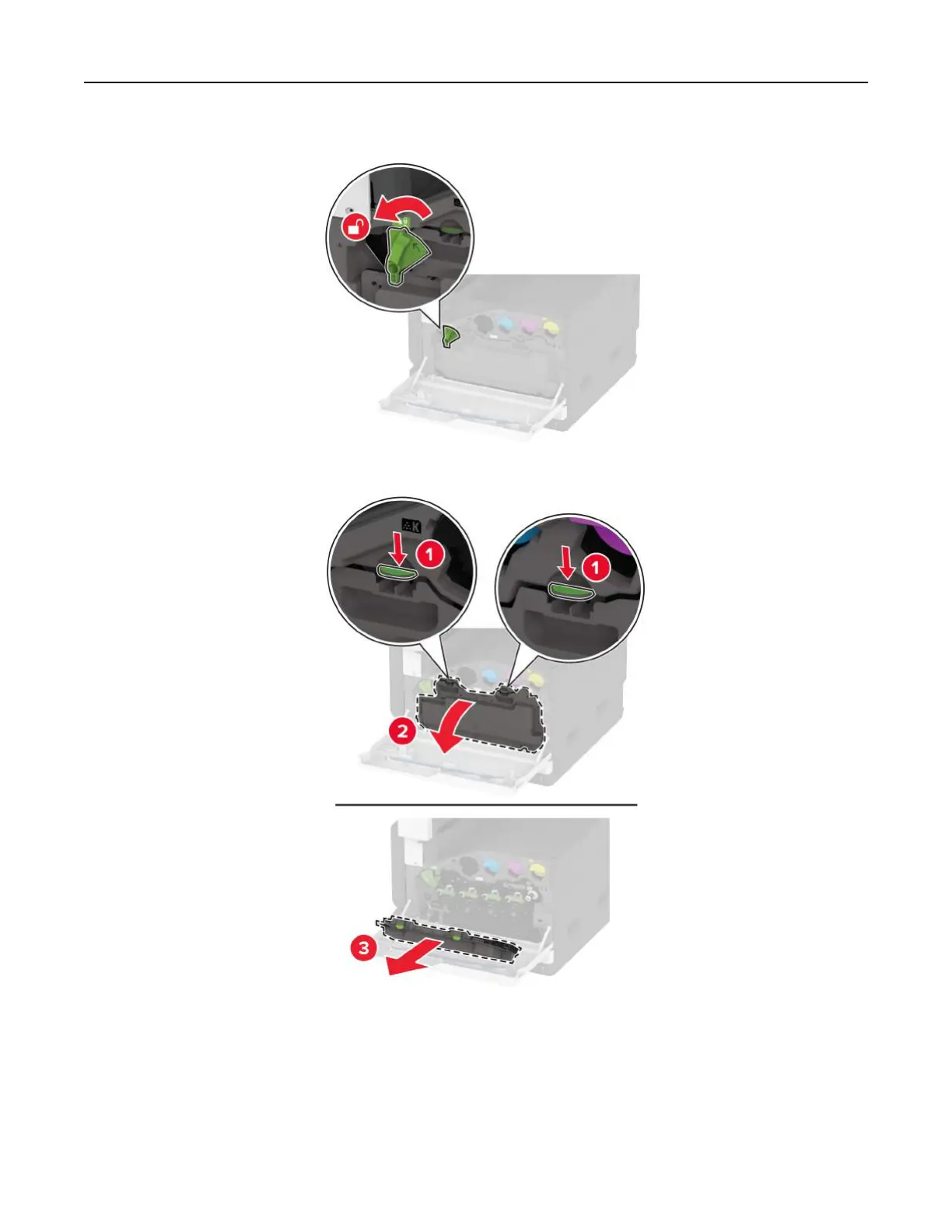 2 Unlock the waste toner bottle.