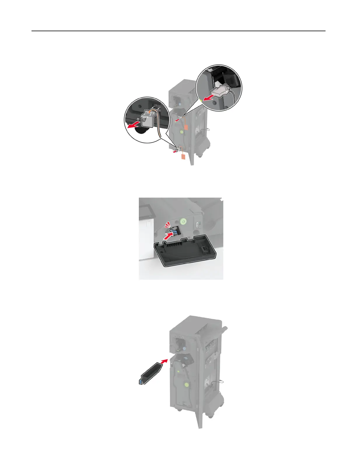 5 Remove the packing material inside the booklet finisher.