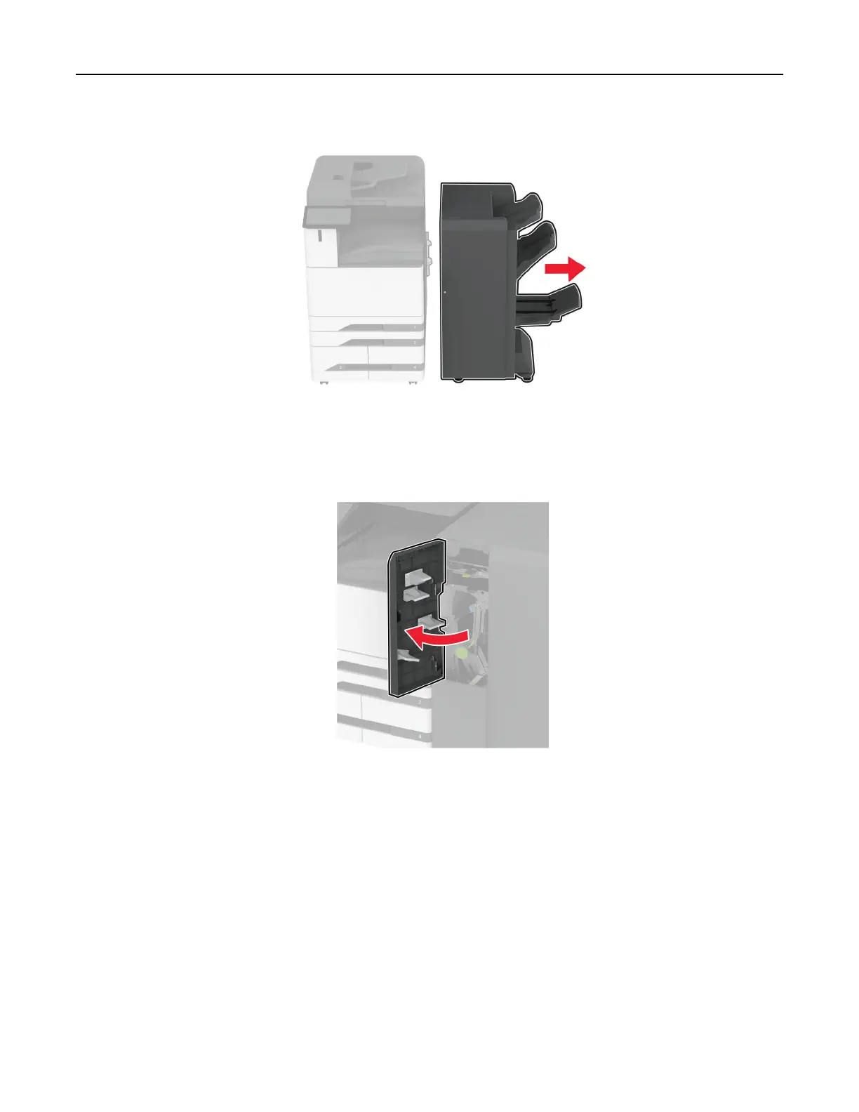 6 Unpack the trifold/Zfold finisher, and then remove all the packing material.
