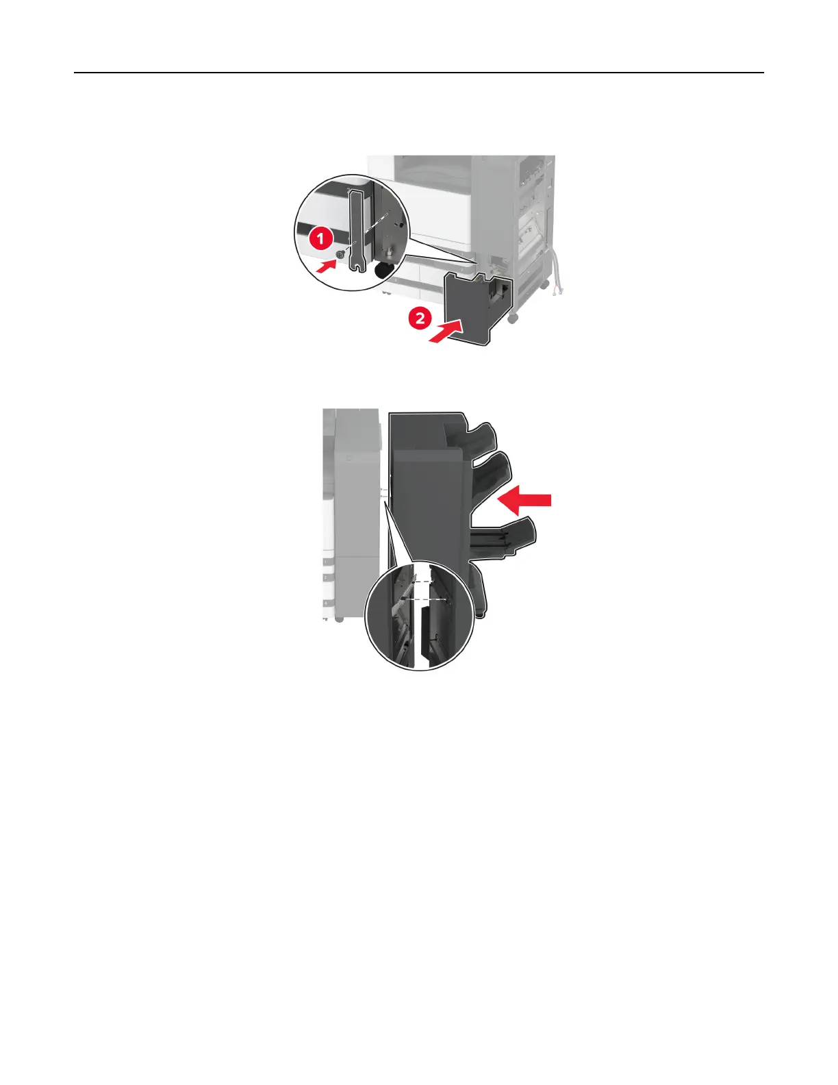 15 Attach the booklet finisher to the trifold/Z-fold finisher.
