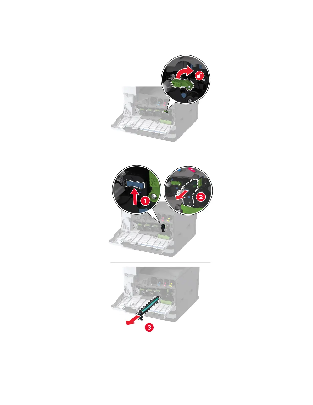 3 Unlock the used photoconductor unit.