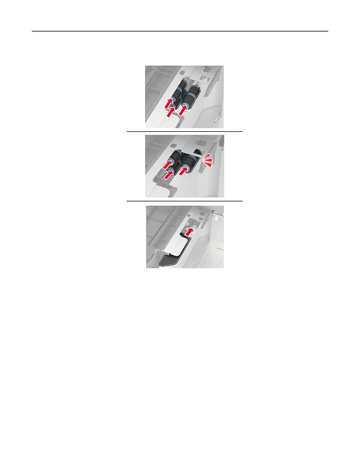 7 Insert the new tray roller kit until it clicks into place.