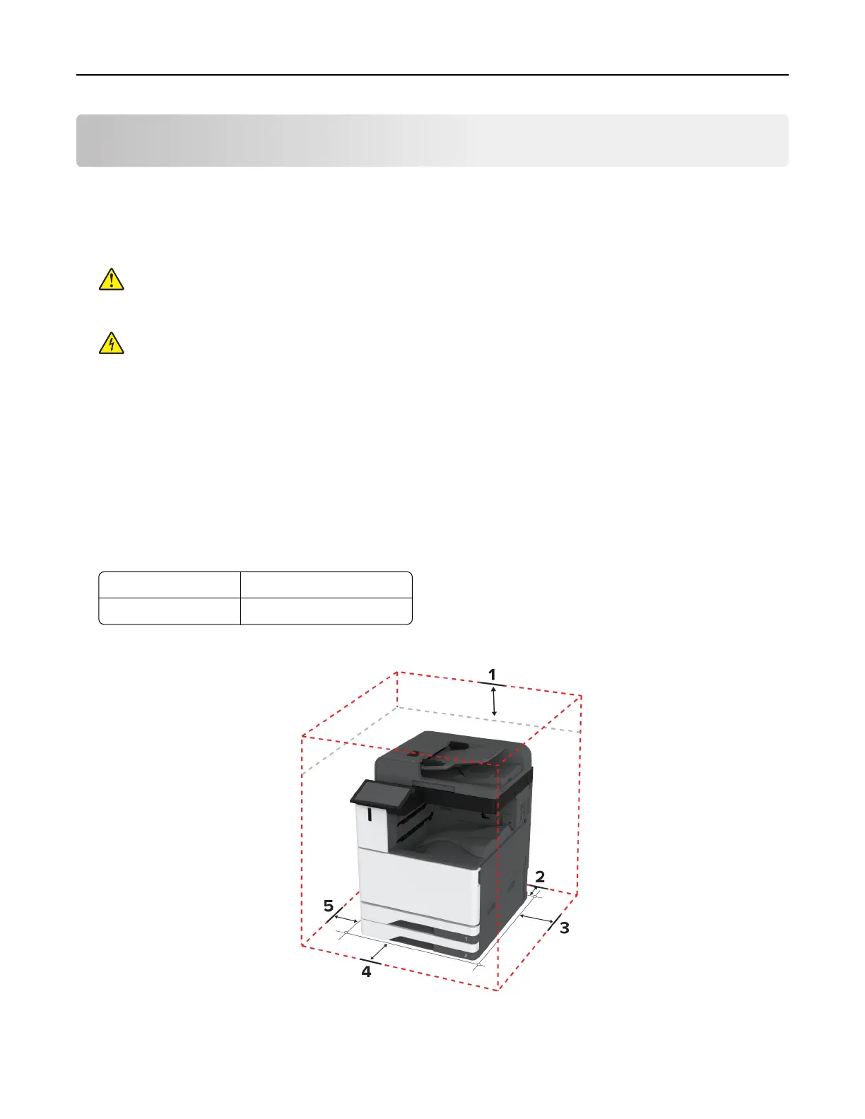 • Allow the following recommended amount of space around the printer for proper ventilation: