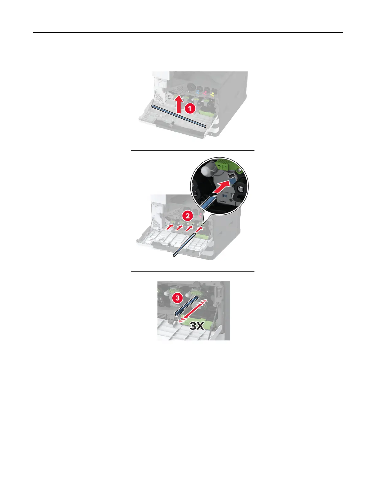 3 Remove the printhead wiper, and then clean the printhead lenses.