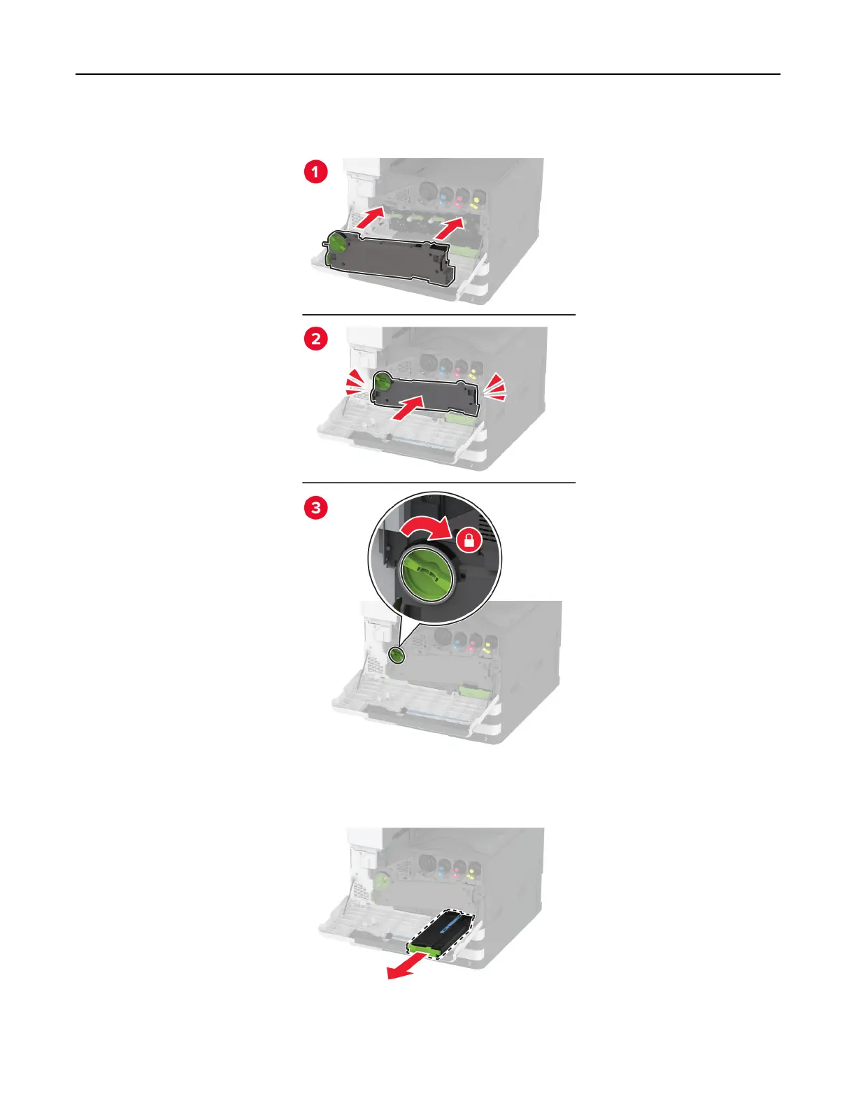5 Insert the waste toner transfer unit until it clicks into place, and then lock it.