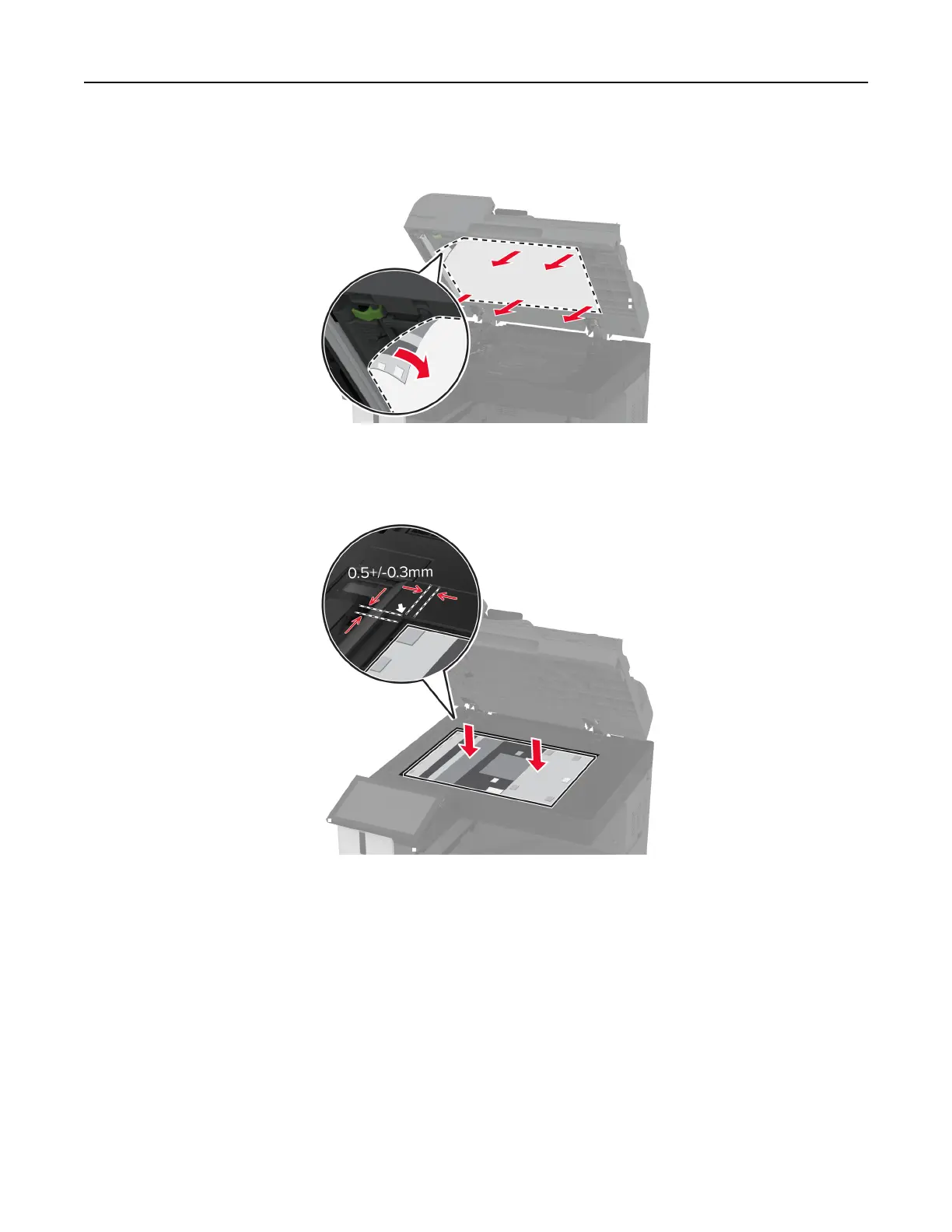 4 Align the new scanner glass pad to the scanner glass.