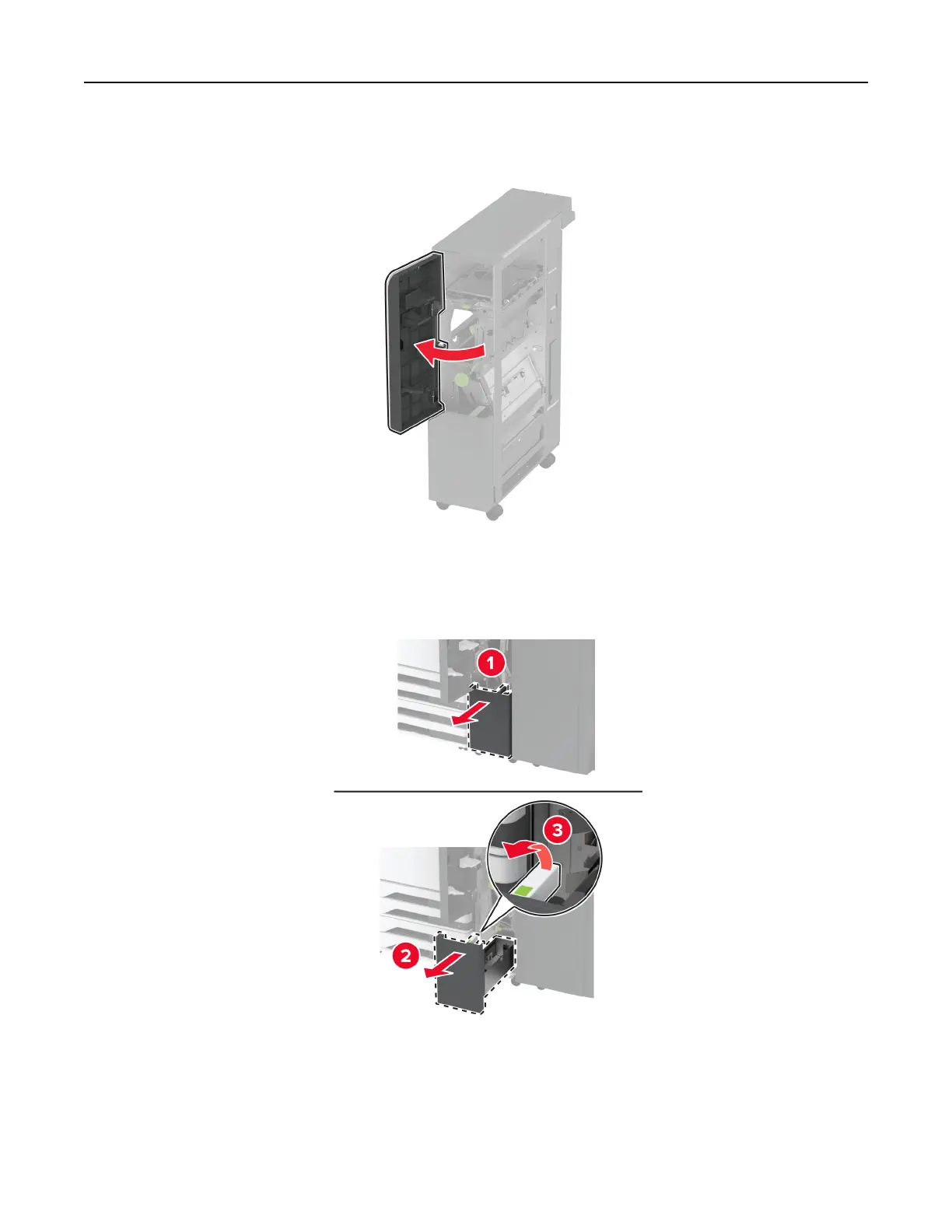 2 Open the trifold/Z-fold finisher door.