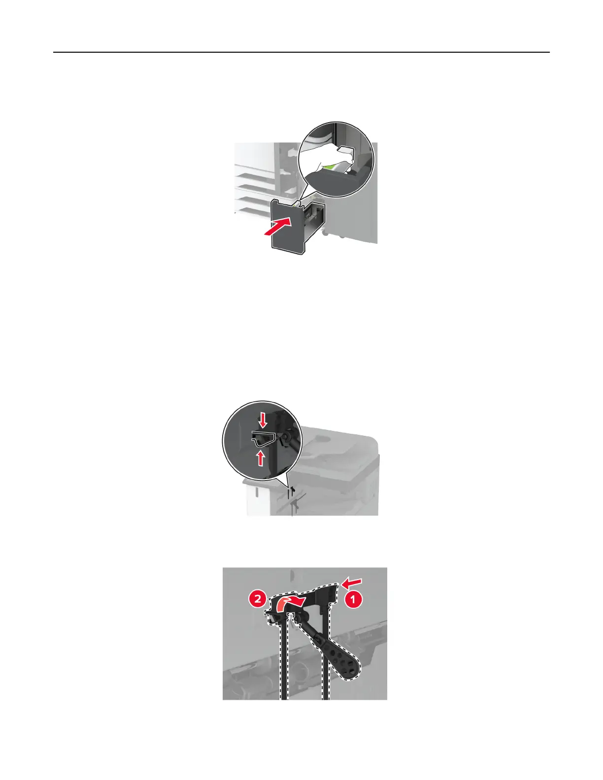 5 Insert the new finisher bin.