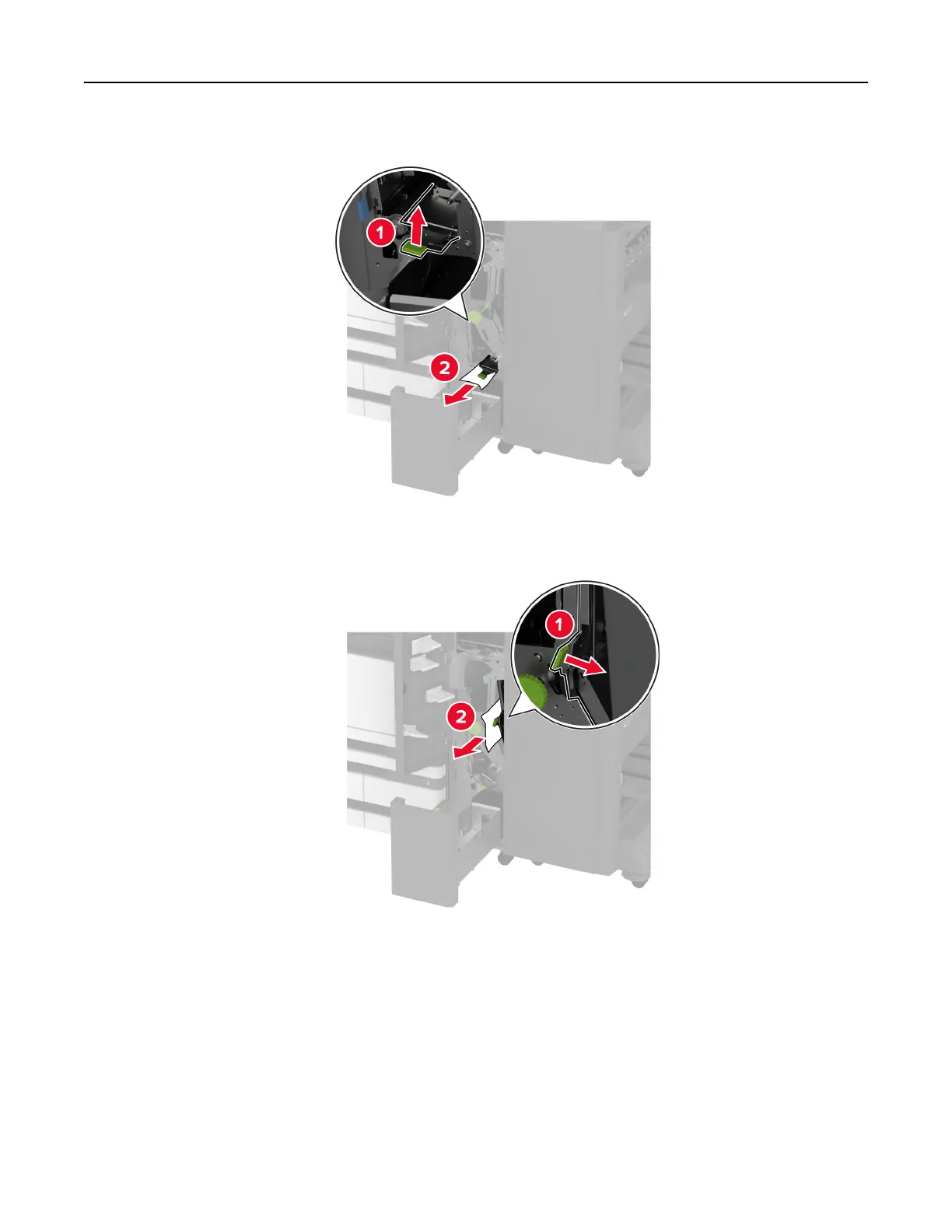 10 Push the finisher bin back into place, and then close the trifold/Zfold finisher door.