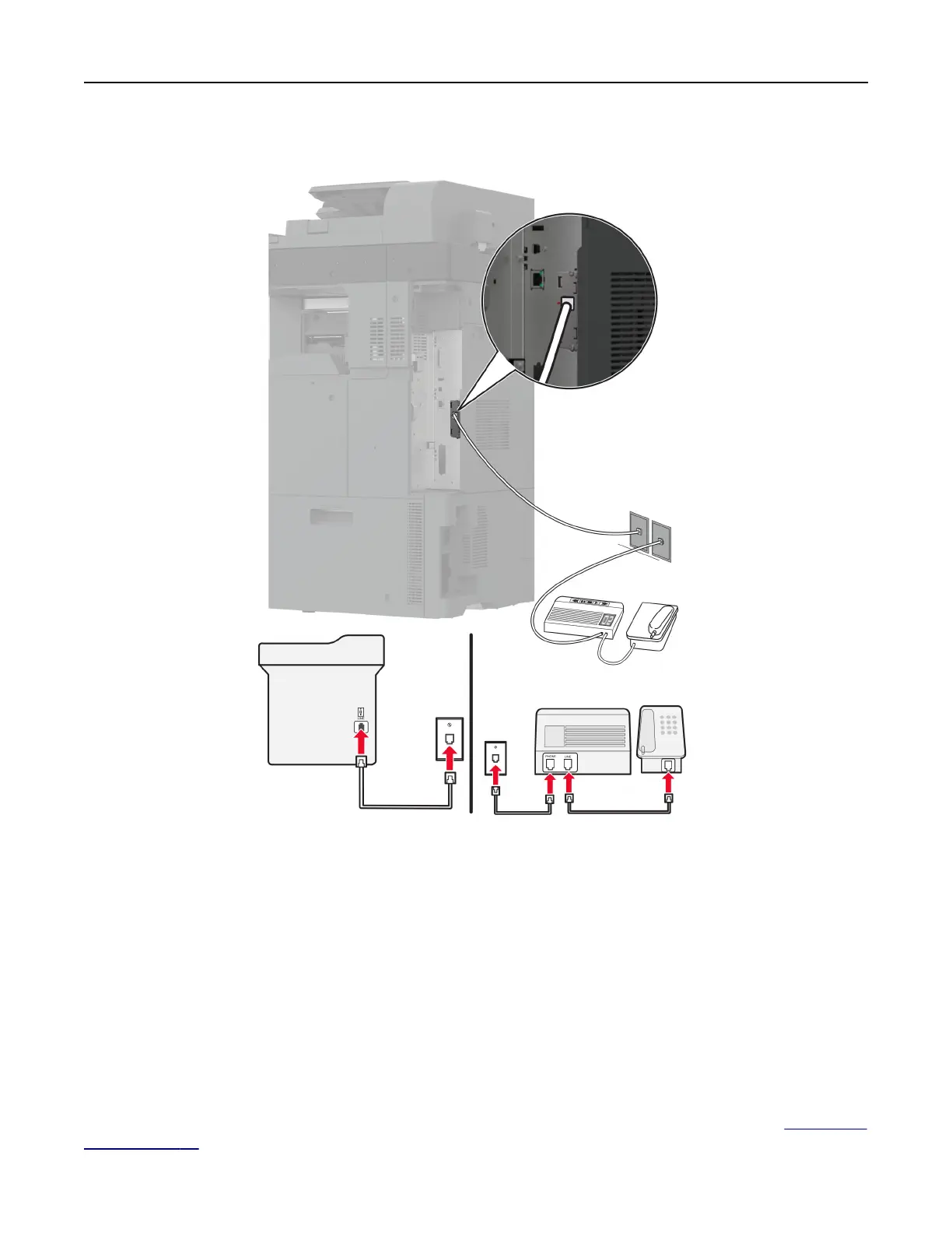 1 Connect one end of the telephone cable to the line port of the printer.