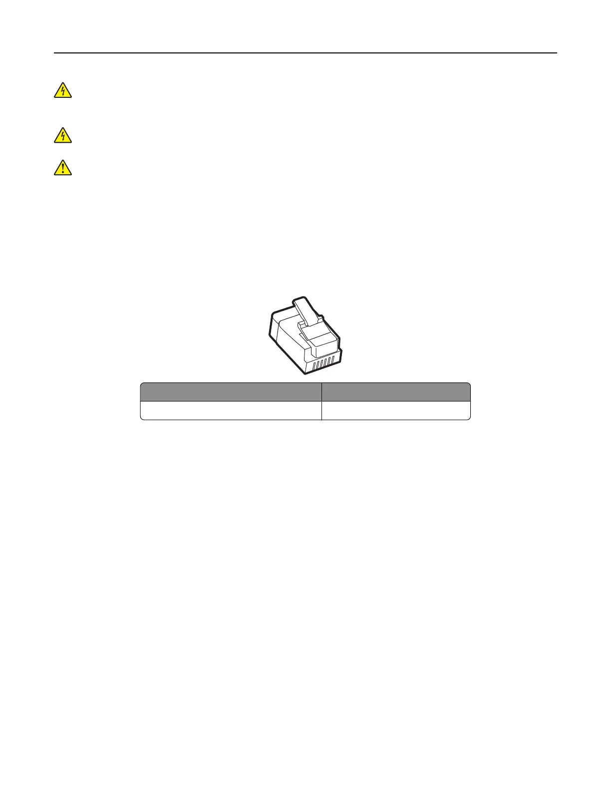 There may be an adapter plug installed in the telephone port of the printer. Do not remove the adapter plug