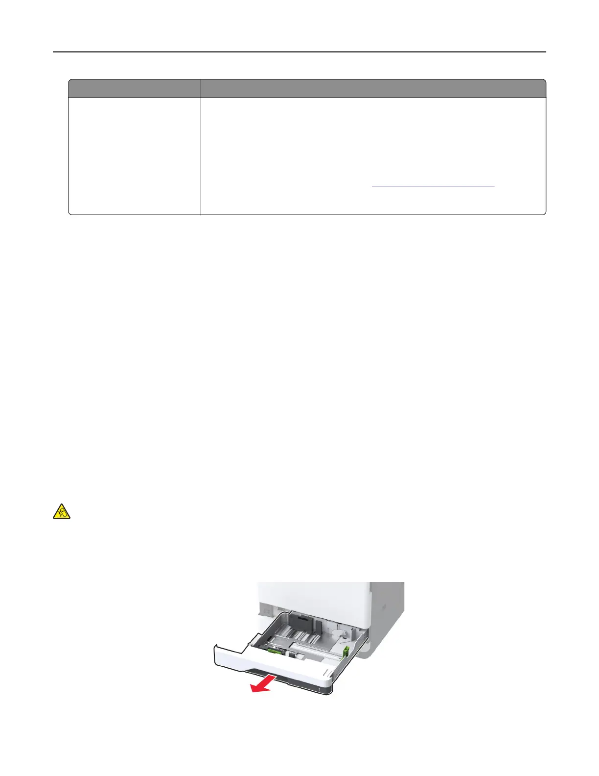 Note: To avoid jams, do not pull out trays while the printer is busy.