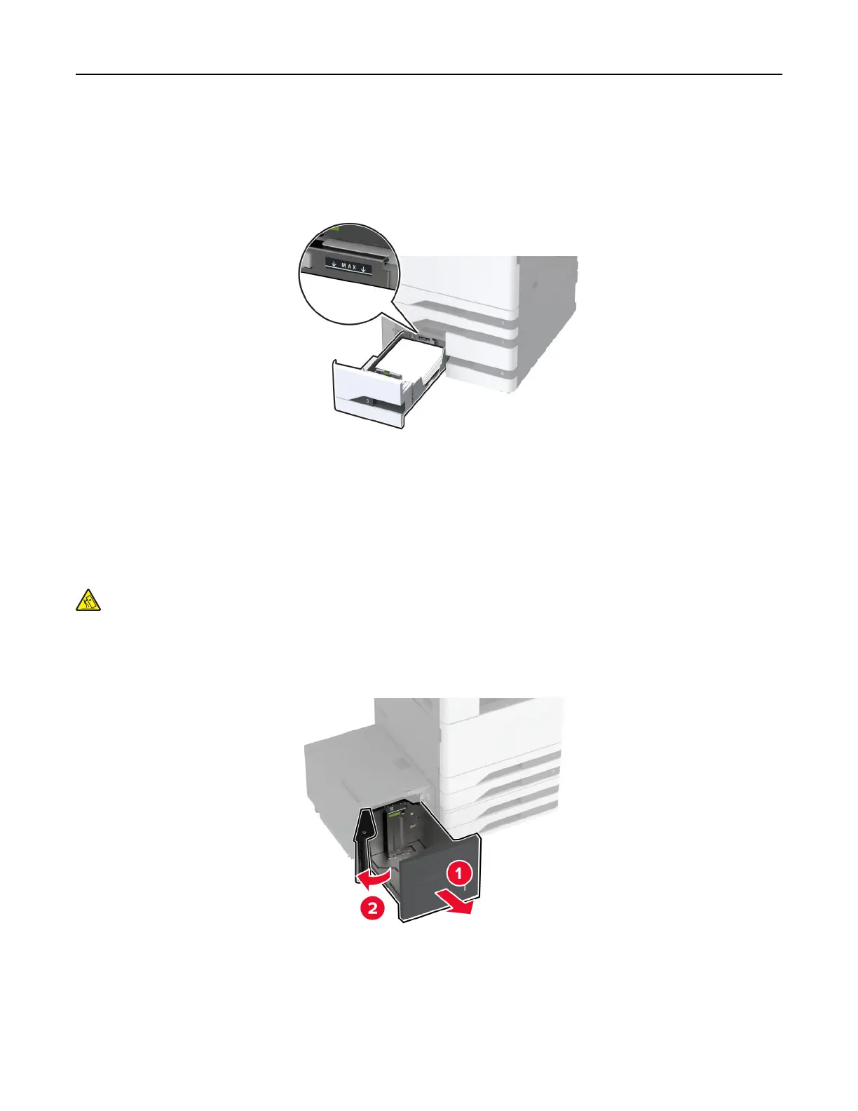 Note: To avoid jams, do not pull out trays while the printer is busy.