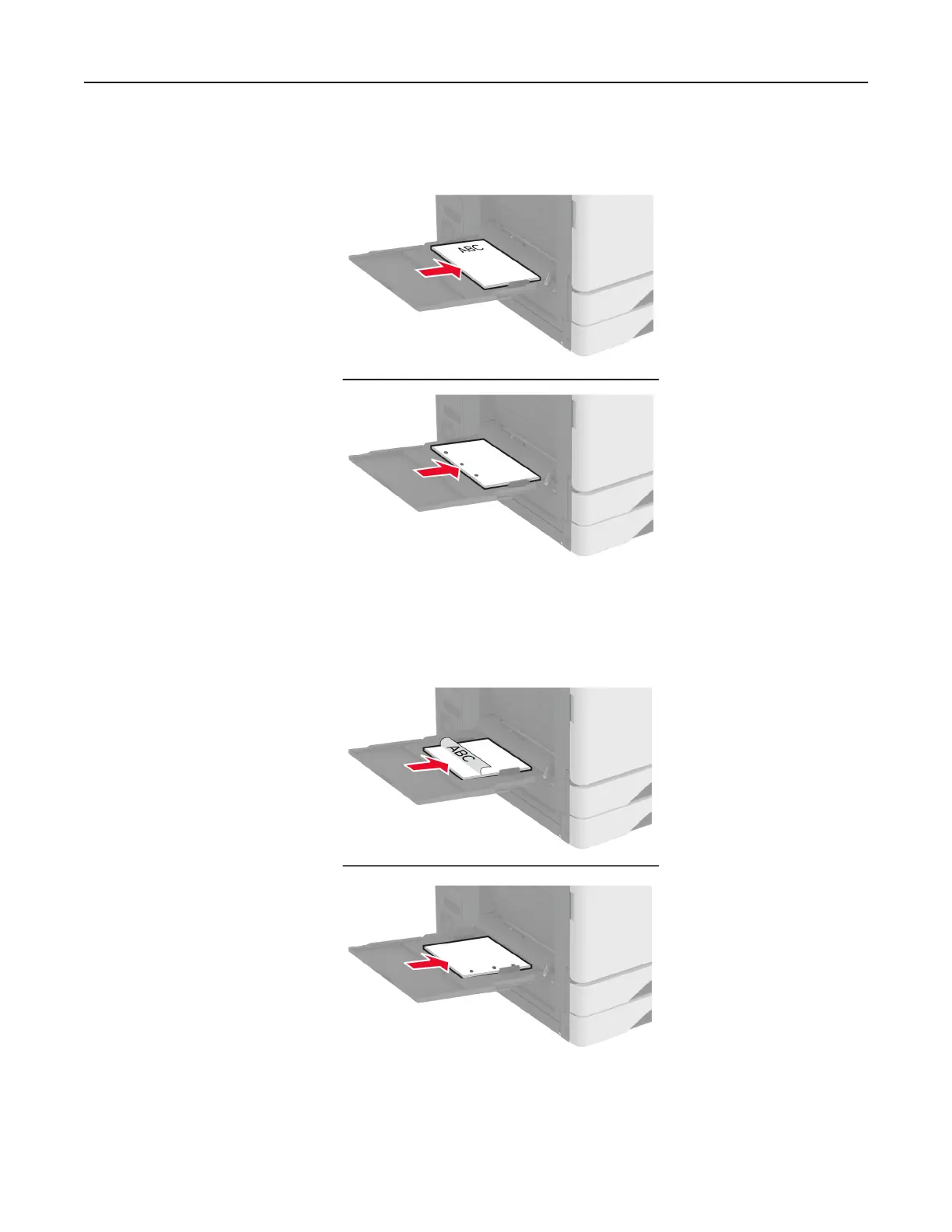 • For two-sided printing, load letterhead faceup with the header toward the rear of the printer. Load