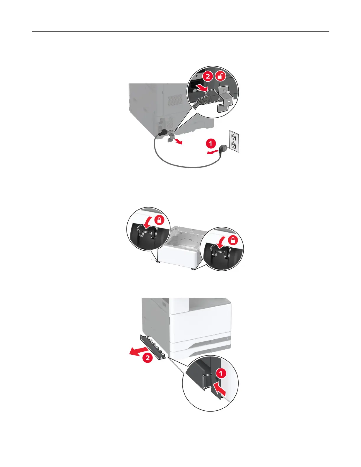 2 Unplug the power cord from the electrical outlet, and then from the printer.