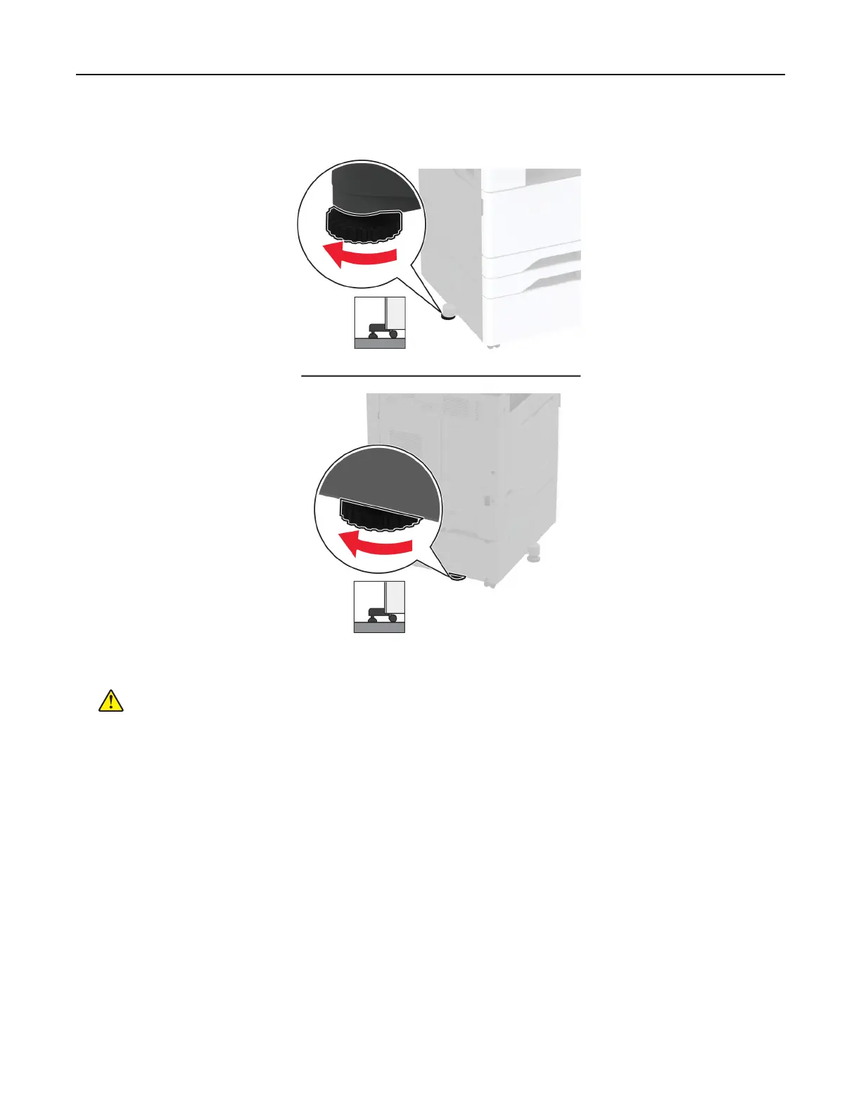 13 Adjust the levelers to make sure that all sides of the printer have the same height.