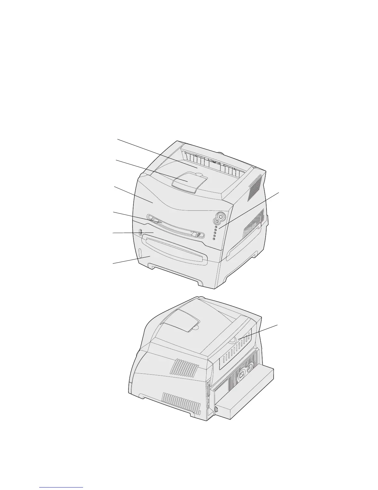 An output bin on top of the printer holds up to 150 sheets. The single-sheet rear exit provides a