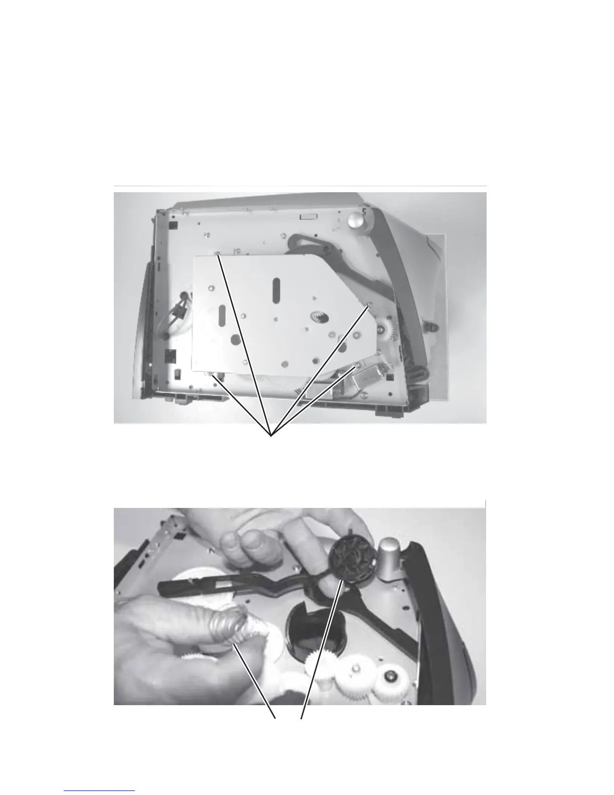 3. Remove four screws (A) in the gear train metal cover.