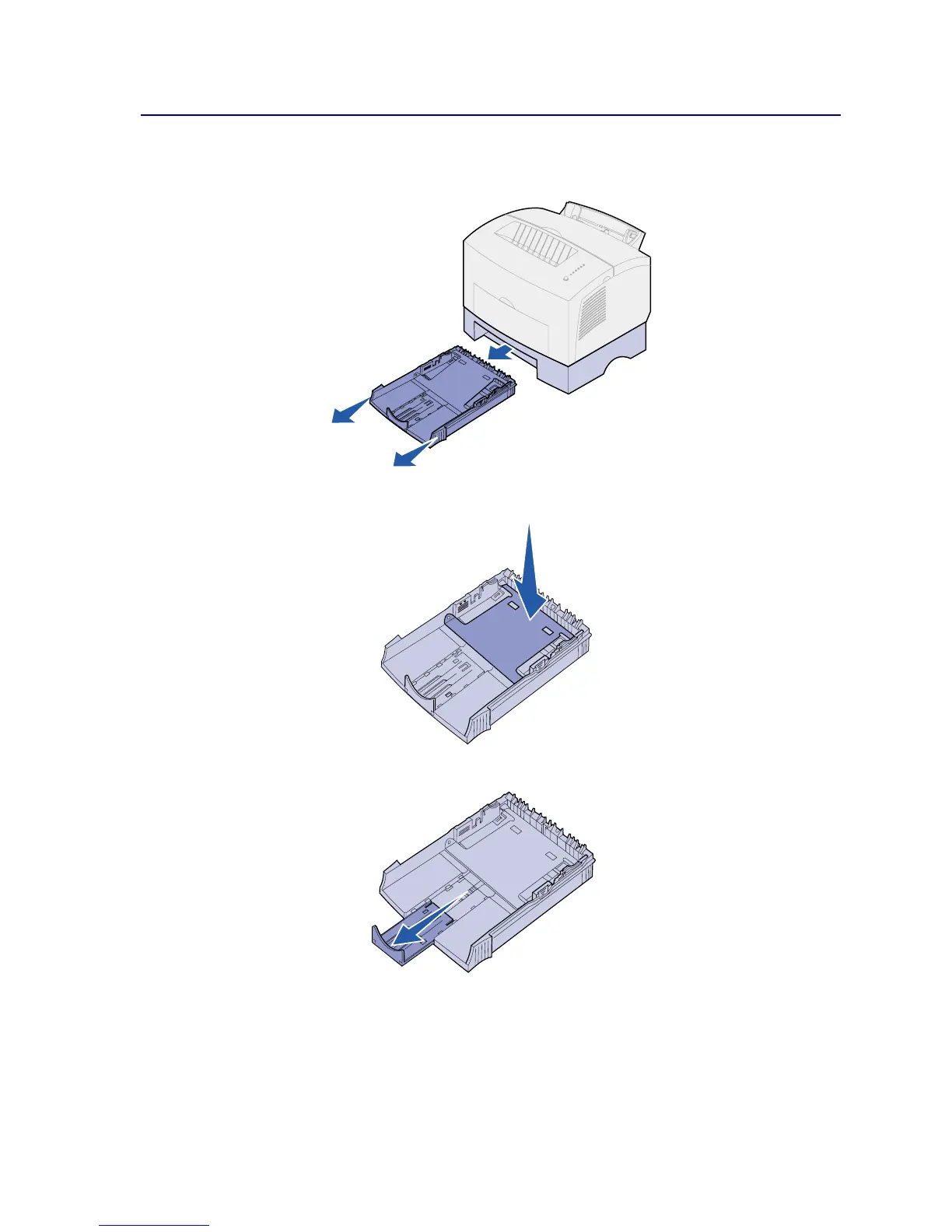 1 Grasp the tabs on either side of the tray and pull it completely out of the printer.