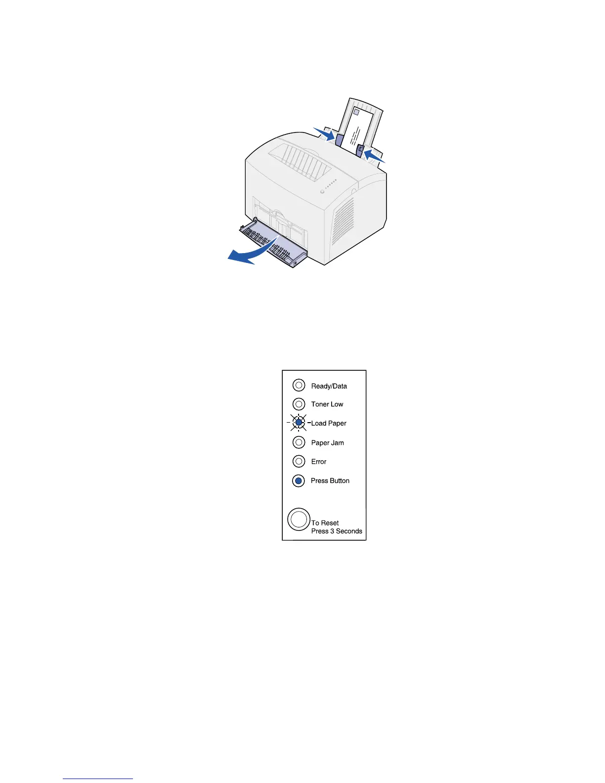 6 When the Load Paper light blinks and the Press Button light comes on, place another