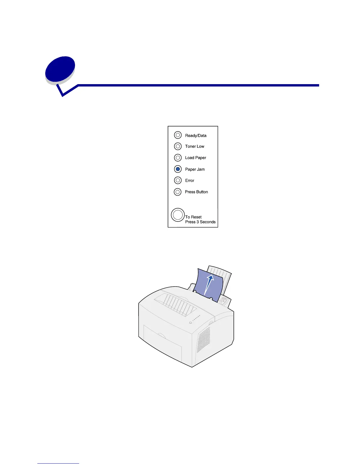 If print media jams in the printer, the Paper Jam light prompts you to clear the paper path.