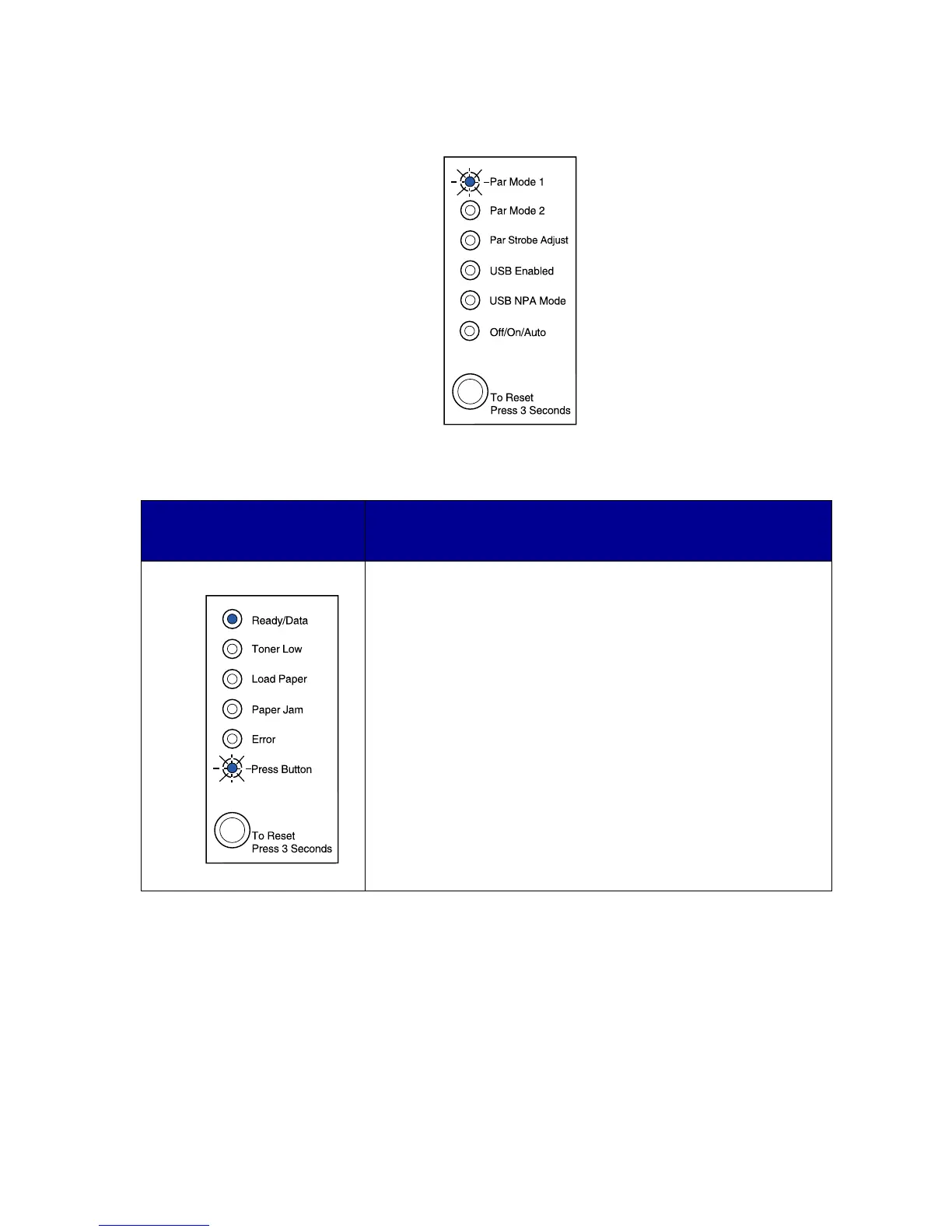 This illustration represents the operator panel settings in advanced troubleshooting mode when an