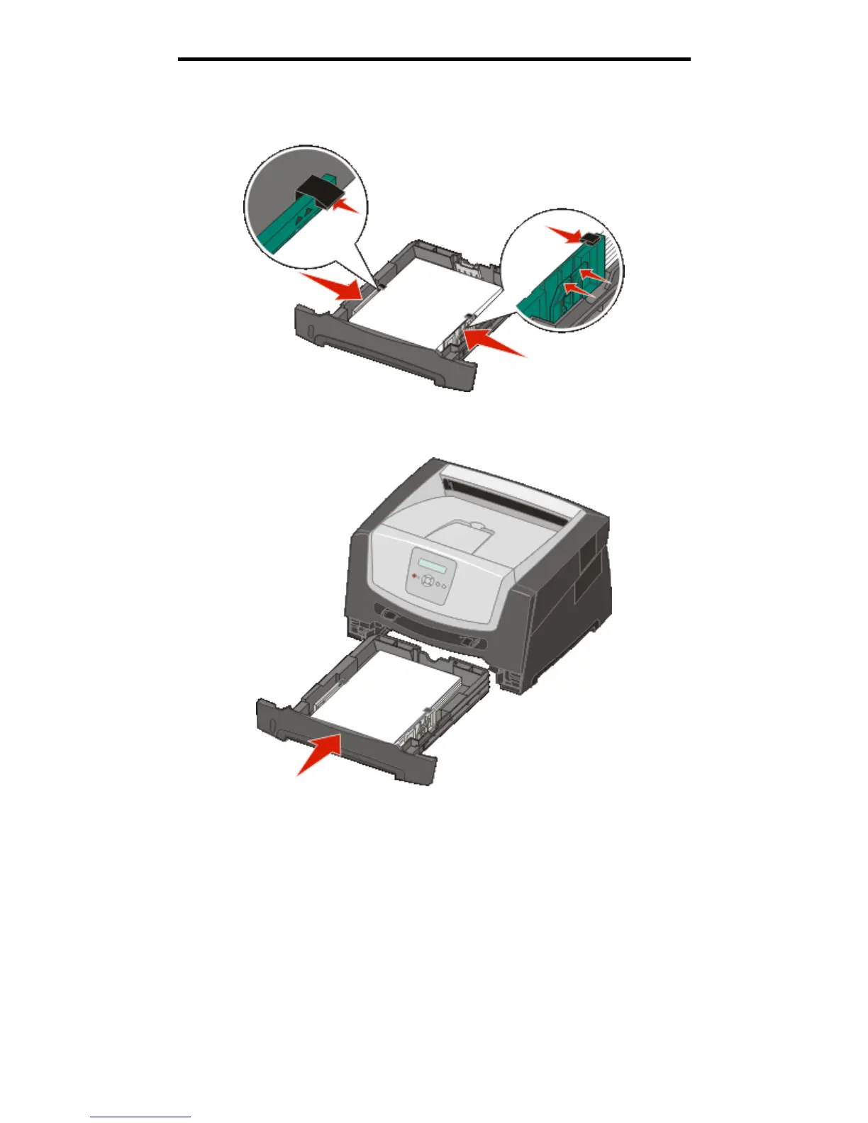 5 Adjust the two side paper guides to touch lightly against the sides of the paper stack.