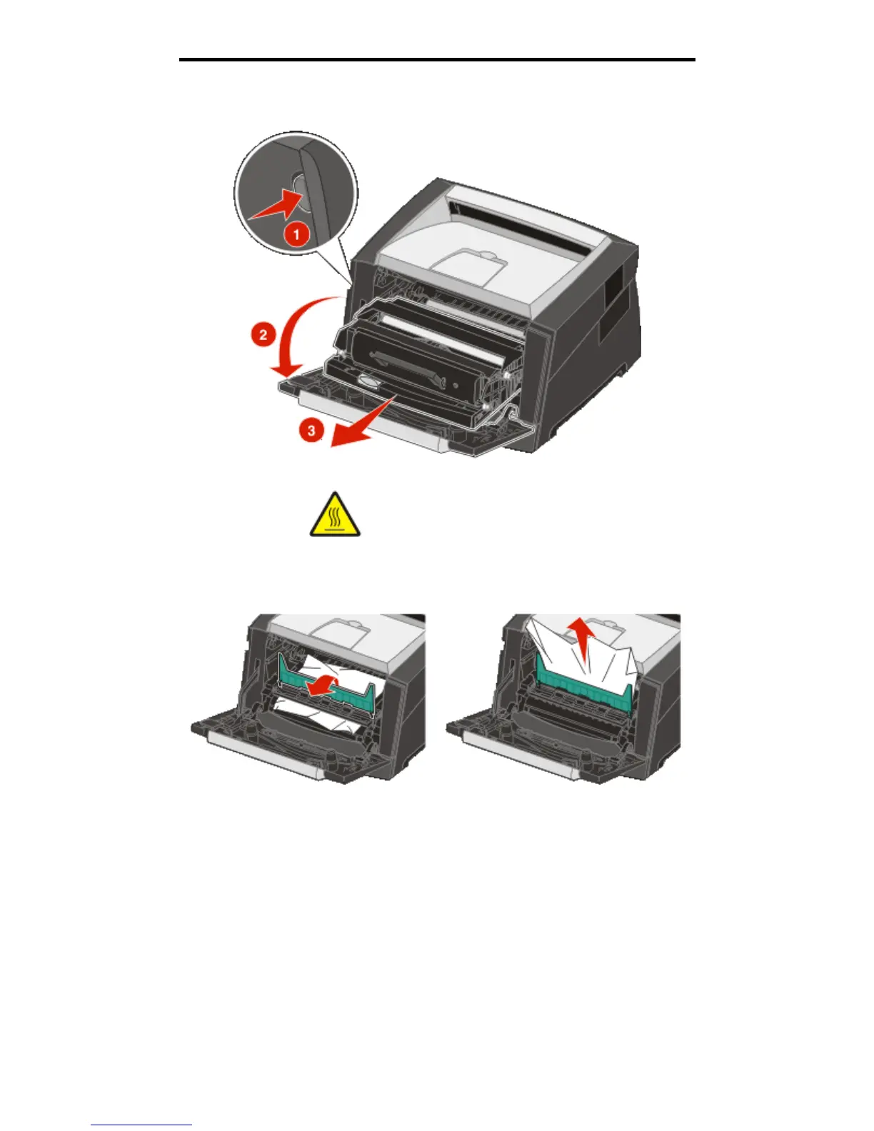 CAUTION:The fuser or fuser area may be hot.